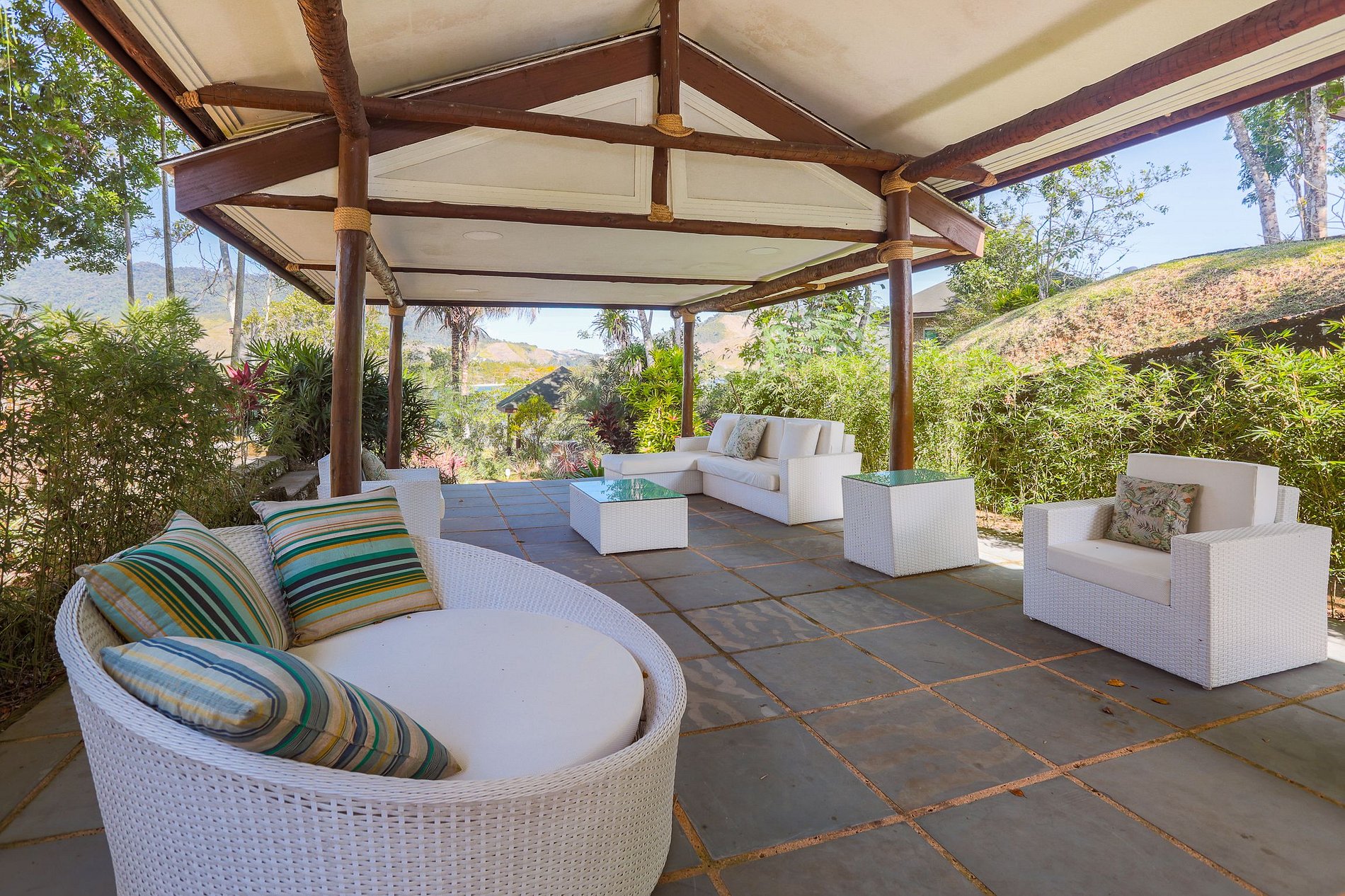 A ilha está a 20 minutos da marina e possuí um amplo jardim com caminhos de pedra para se locomover entre as várias dependências da ilha que são as duas casas, os 2 cais para atracamento de barcos e iates de 30 a 60 pés, 1 heliponto, 1 garagem para lanchas e uma praia privada composta por um grande deck em madeira e