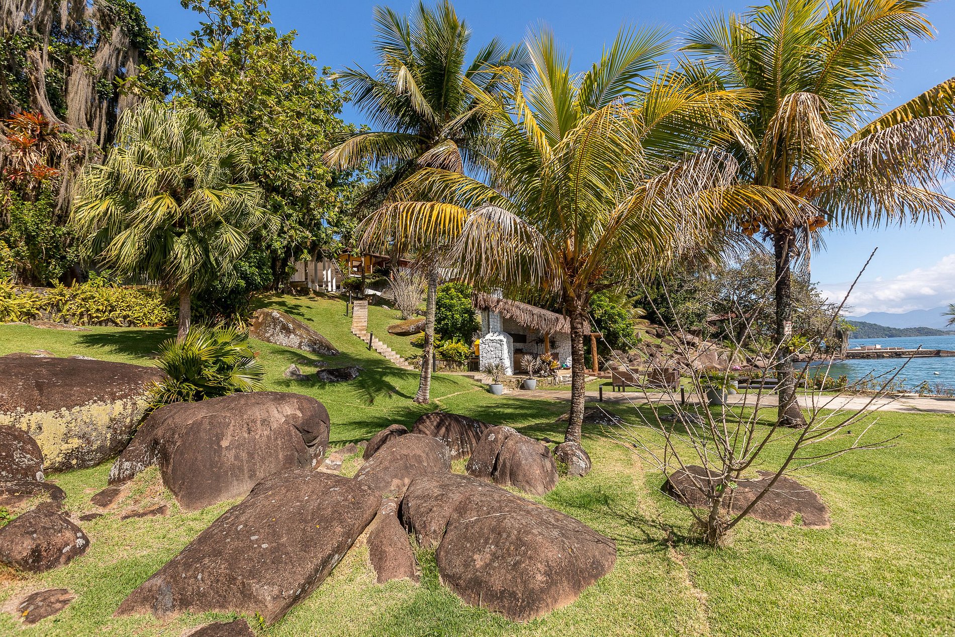 Entre nesta incrível e charmosa casa de veraneio, pé na areia e que possui uma das mais belas vistas da região. Construída sob uma colina na Ilha da Caieira, esta casa está cercada pela mata da ilha e pelas águas cristalinas da baía da Angra dos Reis.