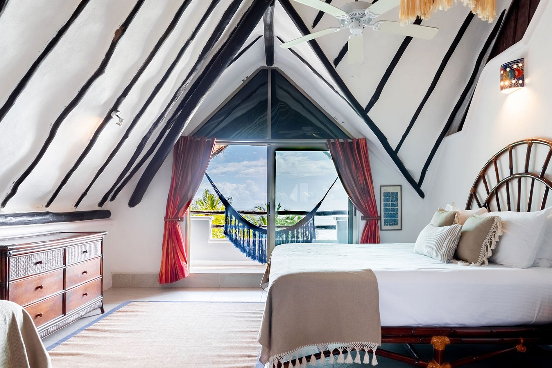 No último andar, sob a palapa, você encontrará um ambiente caribenho autêntico. Um espaçoso quarto king-size com banheiro privativo o aguarda, oferecendo um terraço privativo com uma vista pitoresca da baía.