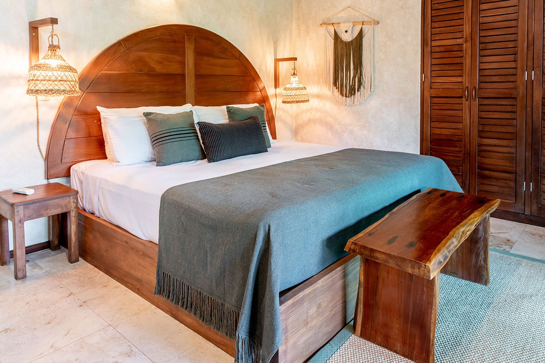 No último andar, sob a palapa, você encontrará um ambiente caribenho autêntico. Um espaçoso quarto king-size com banheiro privativo o aguarda, oferecendo um terraço privativo com uma vista pitoresca da baía.