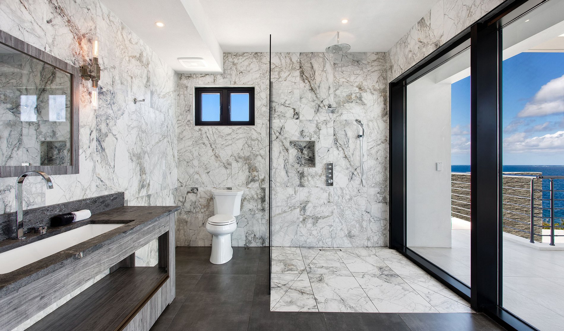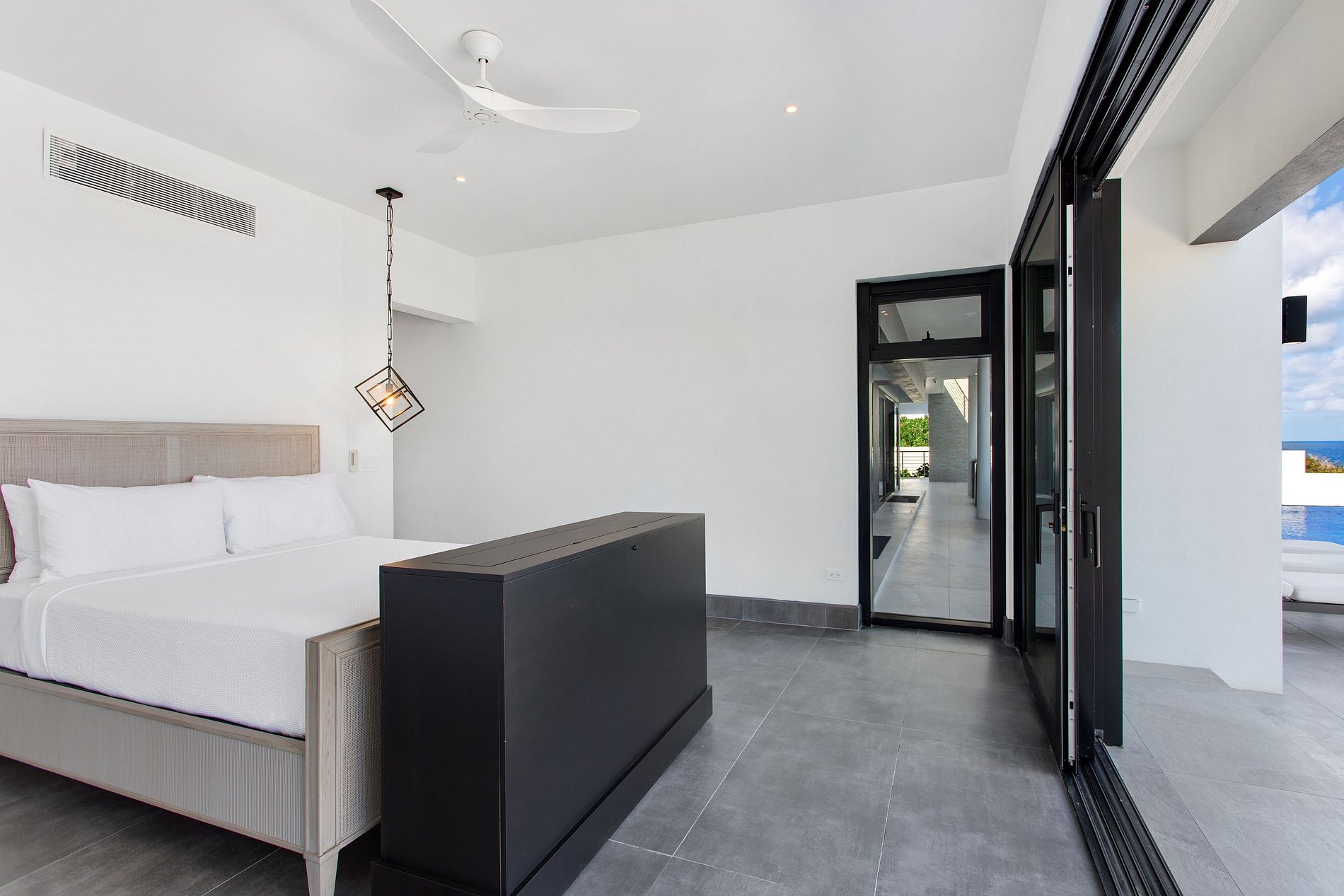 O conceito arquitetônico é marcado por linhas geométricas limpas, tons neutros e painéis de vidro do chão ao teto que se integram ao ambiente caribenho. As áreas externas giram em torno de uma piscina infinita que parece se fundir com o horizonte turquesa. Várias varandas mobiliadas, piscina aquecida (sob solicitação) e áreas para refeições ao ar livre permitem momentos de descanso com vistas deslumbrantes para o mar e para a paisagem intocada de Black Garden.