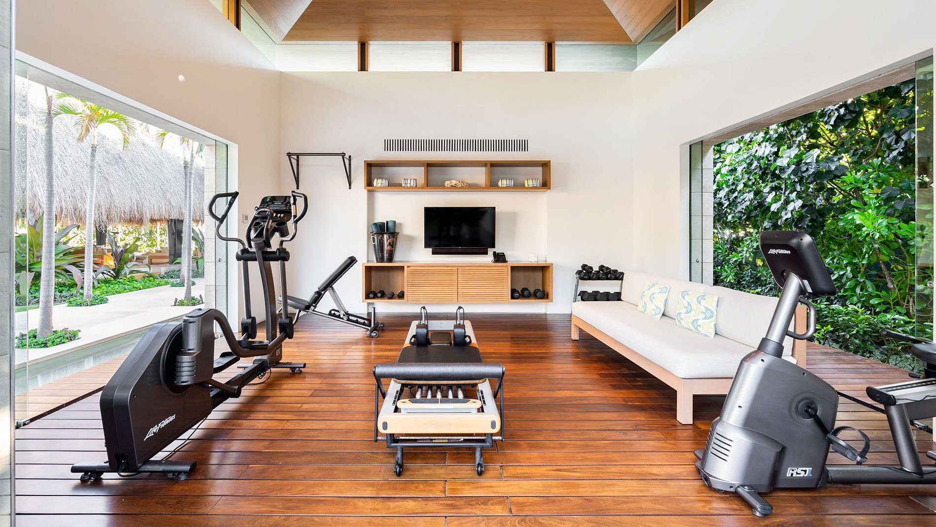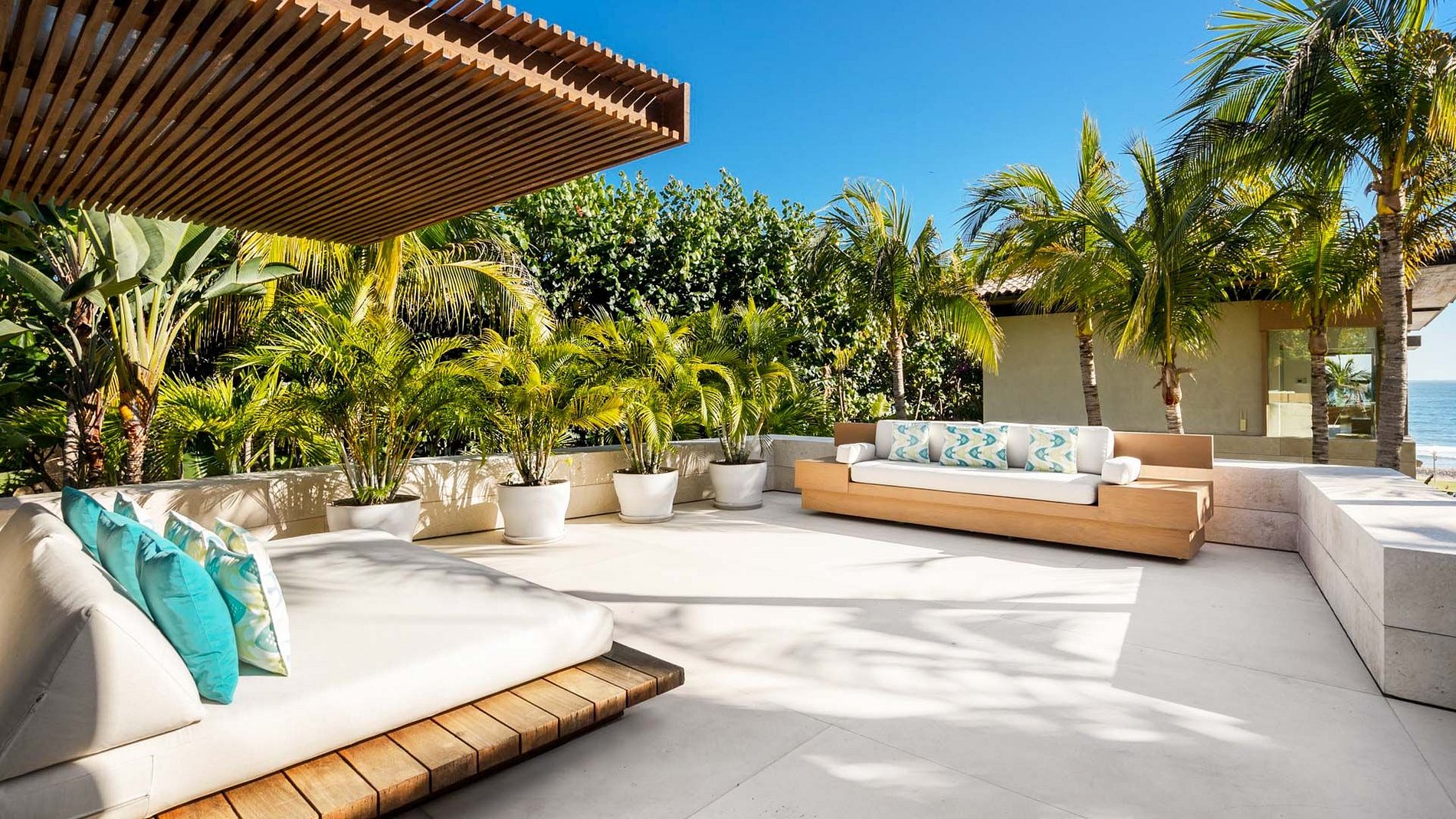 Desde a chegada, a villa revela uma atmosfera serena, marcada por espelhos d’água, jardins tropicais e arquitetura integrada aos espaços abertos. A palapa principal enquadra vistas espetaculares do mar, enquanto as áreas internas e externas fluem naturalmente entre salas, espaços de jantar, piscina e praia, criando um ambiente ideal tanto para relaxar quanto para receber.