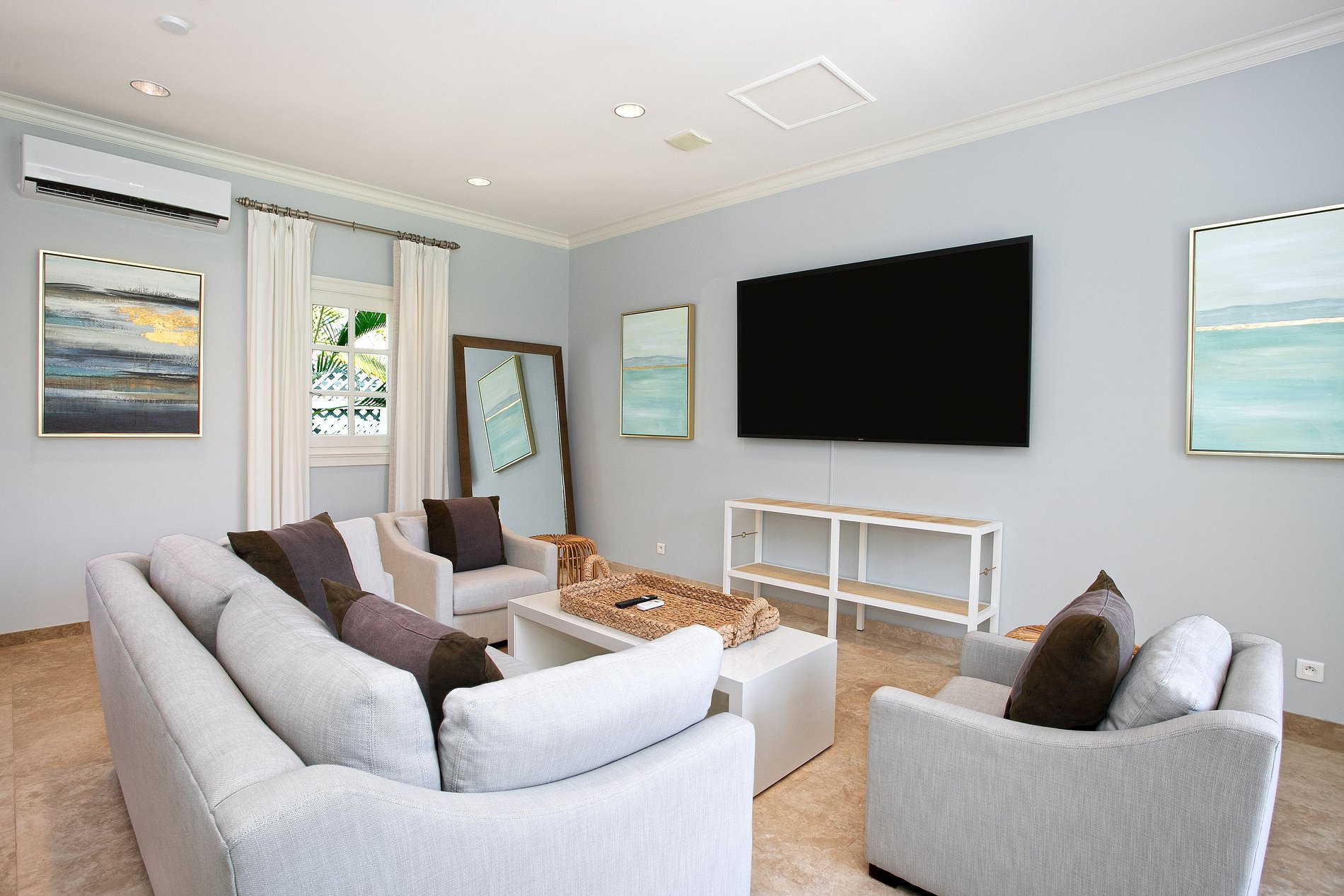 A villa principal conta com seis suítes com cama king-size, incluindo uma suíte master de dois andares com jacuzzi, duas varandas e vista para o oceano. As áreas comuns incluem sala de estar, sala de jantar formal, sala de TV, cozinha totalmente equipada e uma área externa com espaço para refeições informais. A casa do jardim possui quatro quartos adicionais, sala acolhedora, sala de jantar e cozinha profissional de alto padrão.