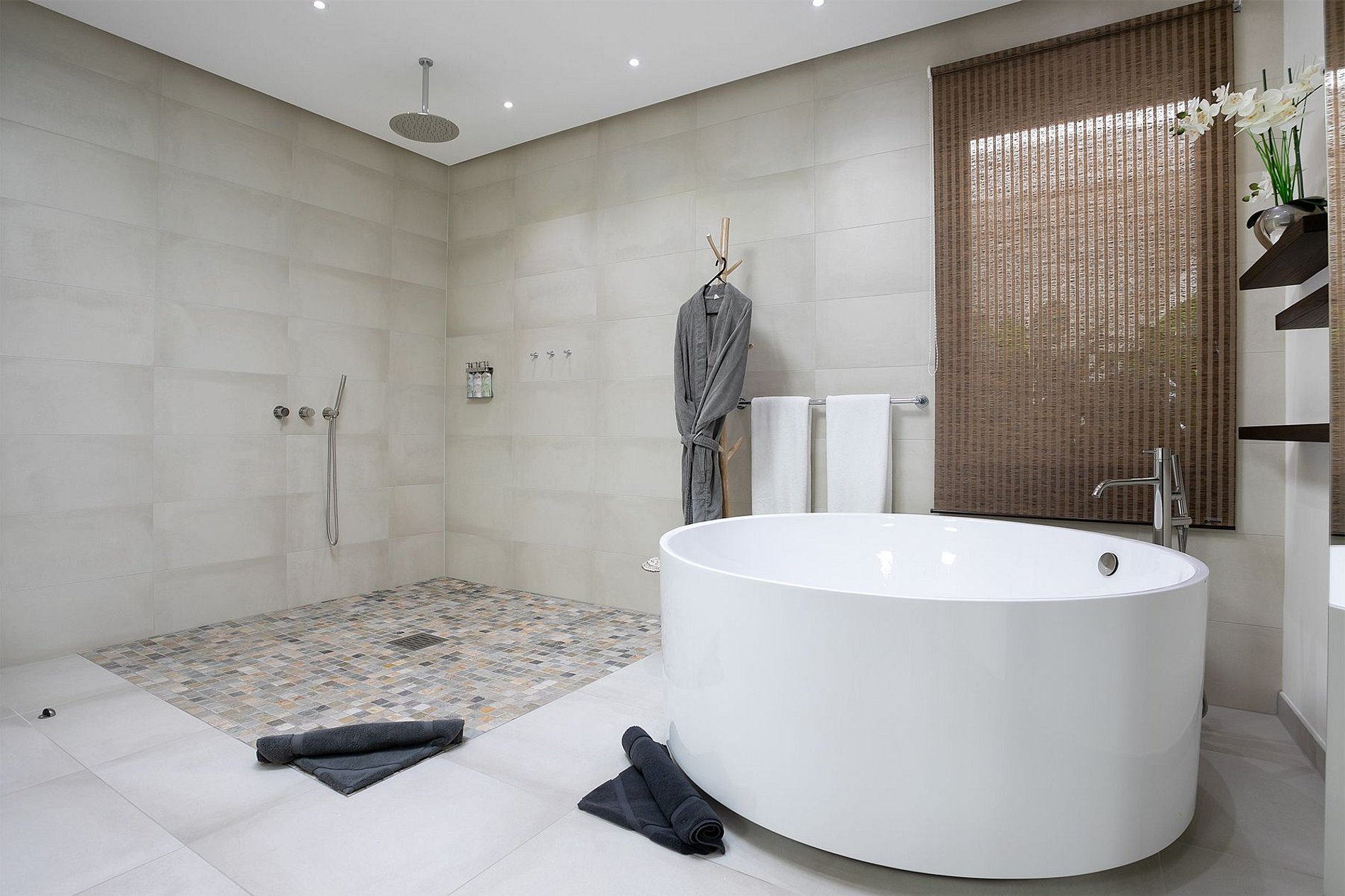 O andar principal conta com uma ampla sala de estar, sala de jantar e uma cozinha gourmet moderna. Portas de vidro do chão ao teto se abrem para o terraço da piscina, integrando perfeitamente os espaços internos e externos. A vila também inclui uma sala de mídia, academia e uma cozinha de verão no terraço – ideal para drinks ao pôr do sol.