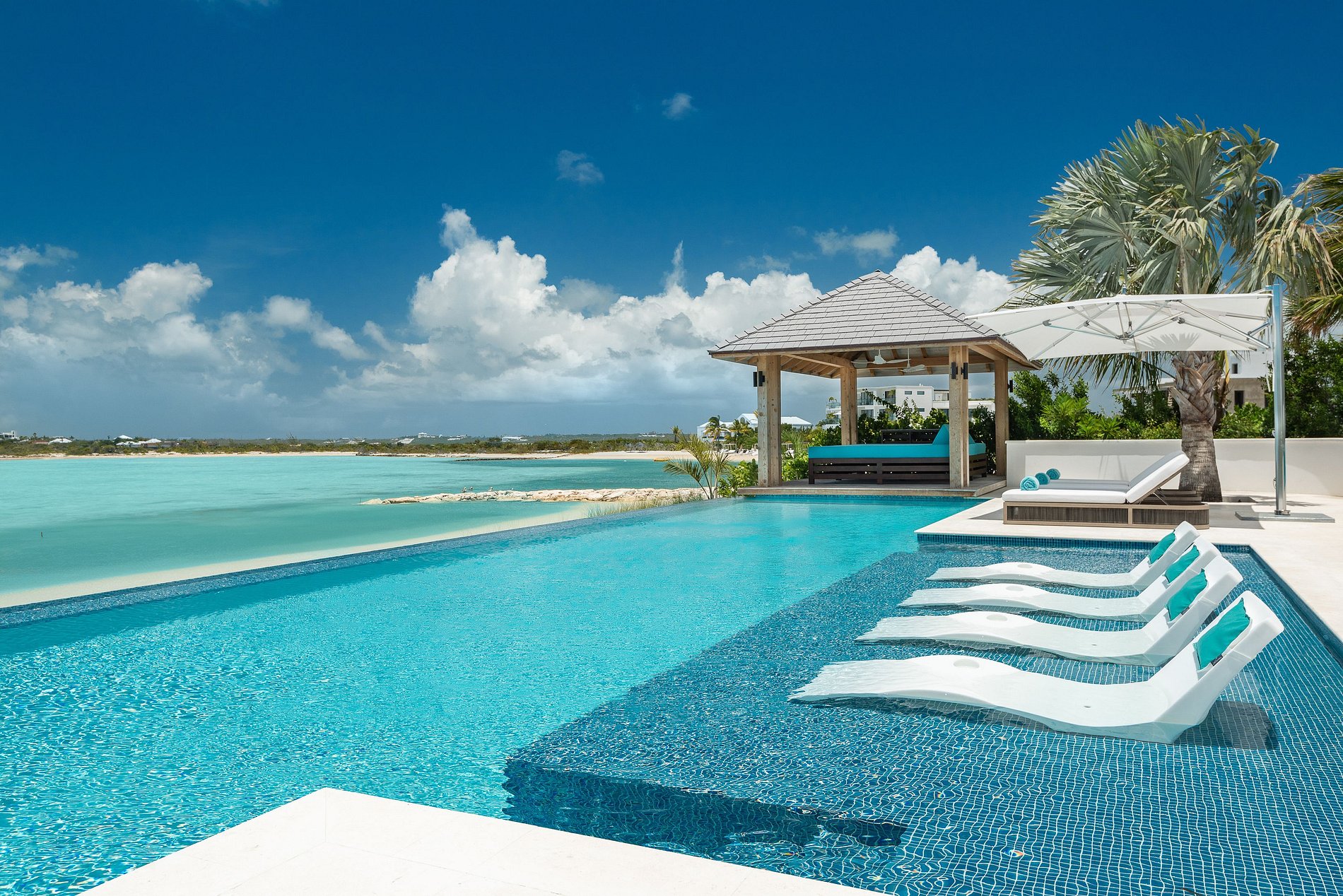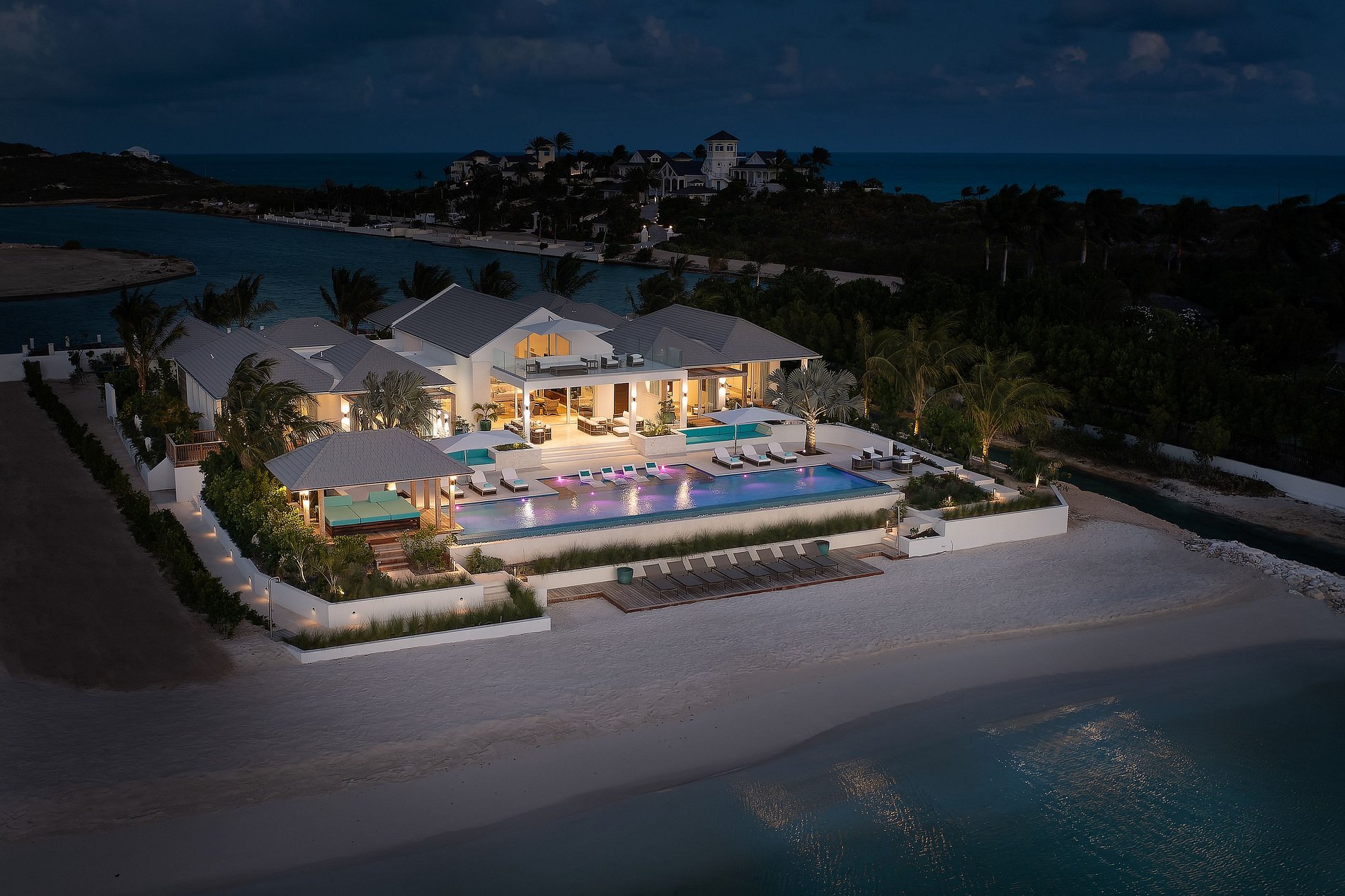 Com uma casa principal e dois pavilhões de hóspedes separados, esta impressionante vila é ideal para grupos grandes de amigos ou famílias que viajam juntos. Cercada por um paisagismo moderno com palmeiras, cactos e buganvílias, a residência oferece arquitetura elegante, total privacidade e vistas hipnotizantes do mar de todos os cômodos.