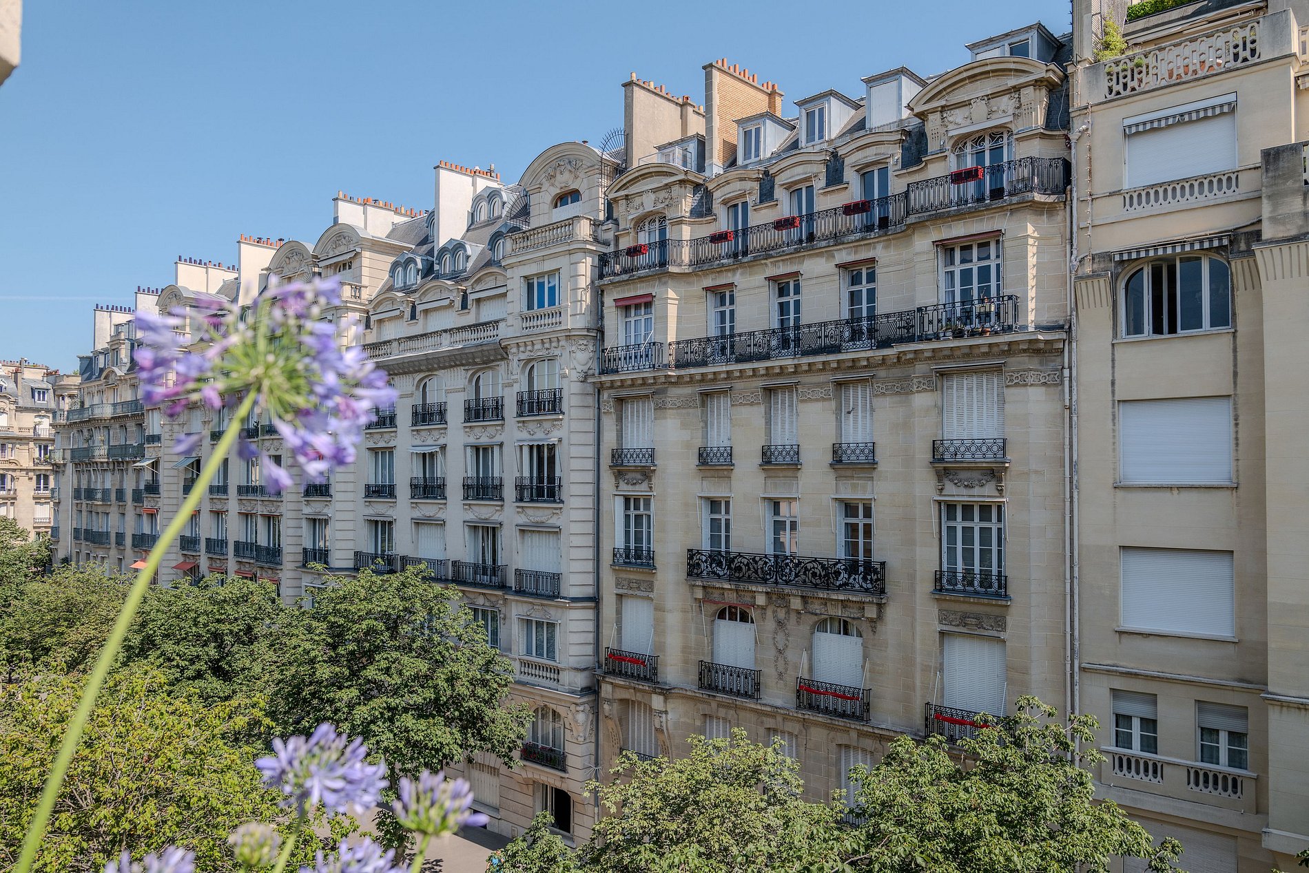Na parte de trás do apartamento, de frente para a bela avenida Frédéric Le Play, você encontrará mais três quartos, cada um equipado com seu próprio banheiro privativo e grandes janelas que permitem a entrada de luz natural abundante.