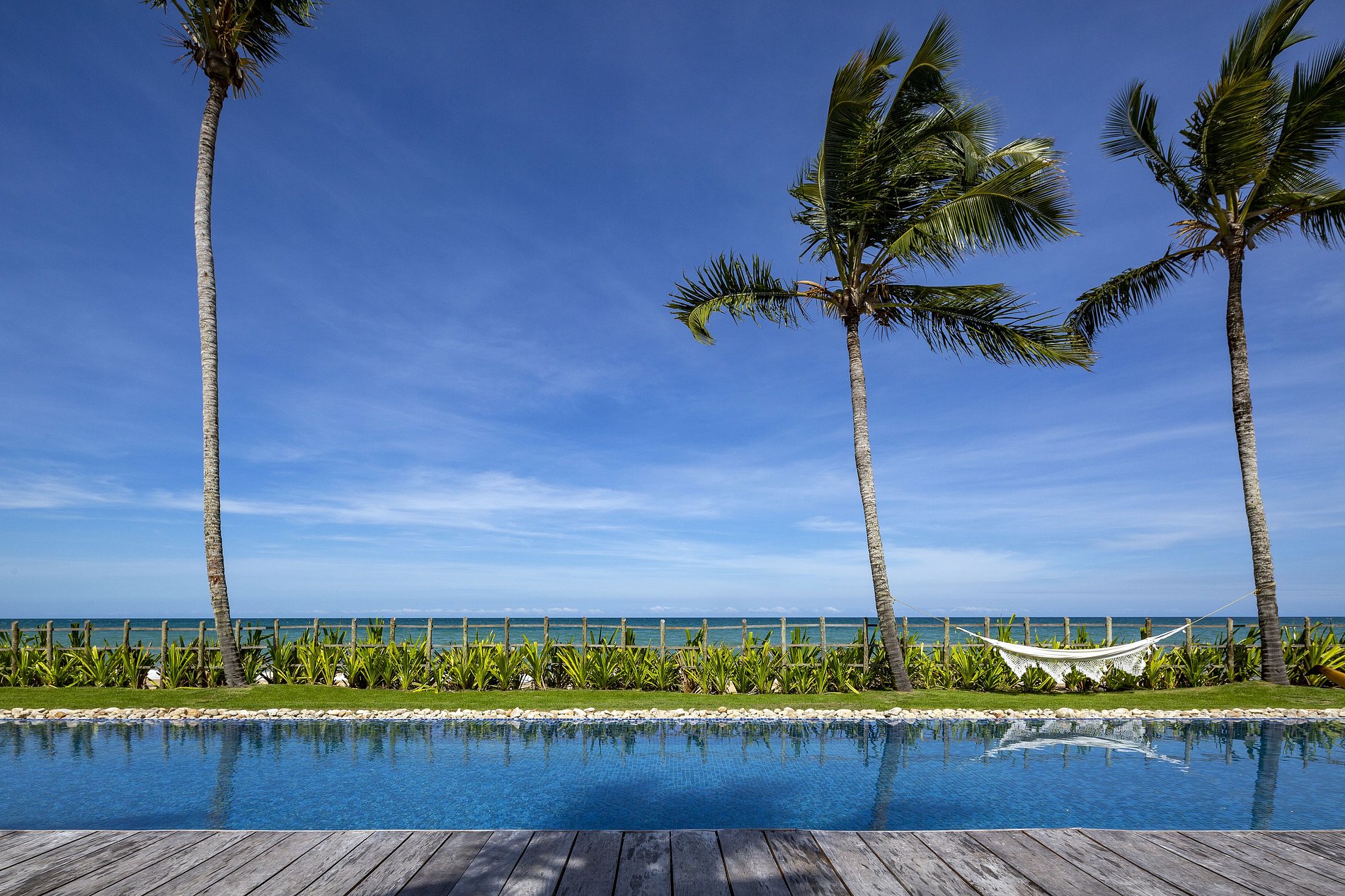 Magnífica propriedade pé-na-areia com 5 casas e 6 suítes, ao todo. Maravilhe-se com toda a beleza arquitetônica das casas e suas áreas sociais que incluem uma piscina gigante, um grande lago com passarela e muito mais atrativos rodeados de verde, garantindo um contato completo com a natureza tropical de Trancoso.