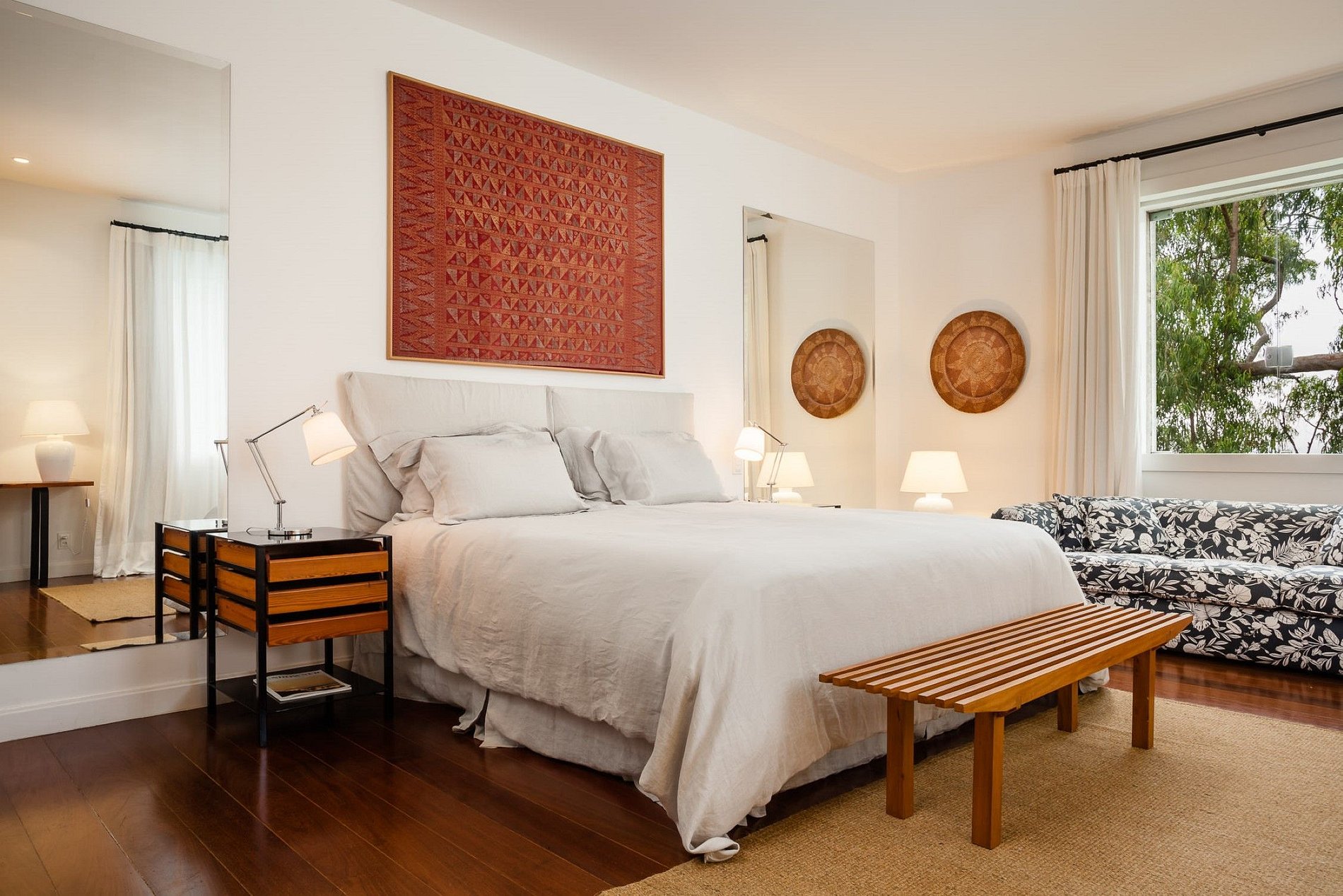 Agora disponível pela primeira vez para aluguel privativo, esta villa de 7 quartos está localizada nos terrenos da propriedade particular de uma das famílias mais antigas e notáveis do Rio, escondida no coração de Santa Teresa. Um refúgio completo no meio da cidade, silencioso, salvo pelo som dos pássaros e da brisa nas amendoeiras, a mansão branca modernista dos anos 1970 está envolvida na floresta tropical da Mata Atlântica, enquanto vistas abaixo do Rio Pão de Açúcar, paisagem urbana e brilhante baía de Guanabara.