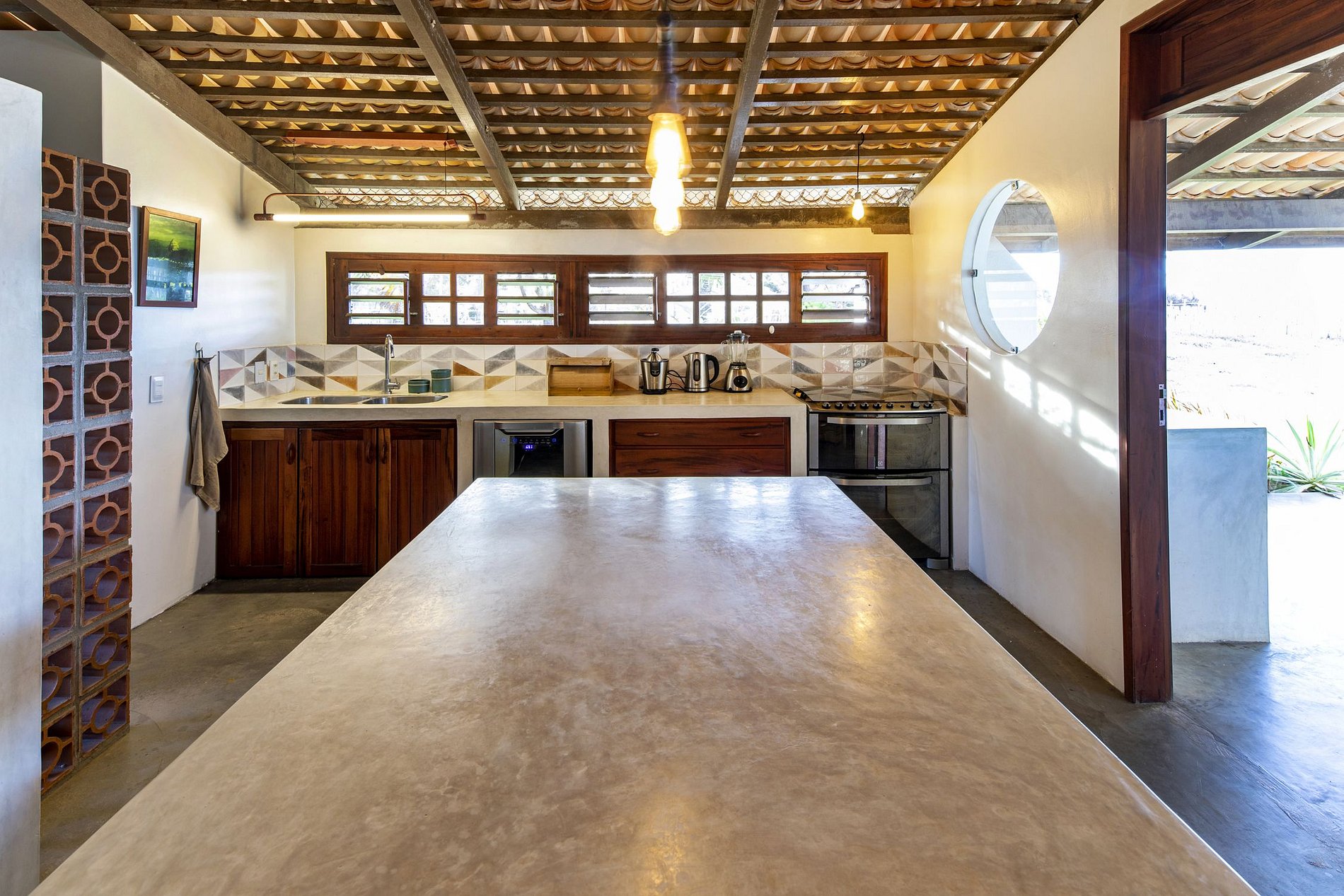 A cozinha está totalmente equipada (forno, máquina de lavar louça, 2 geladeiras, máquina de lavar roupa).