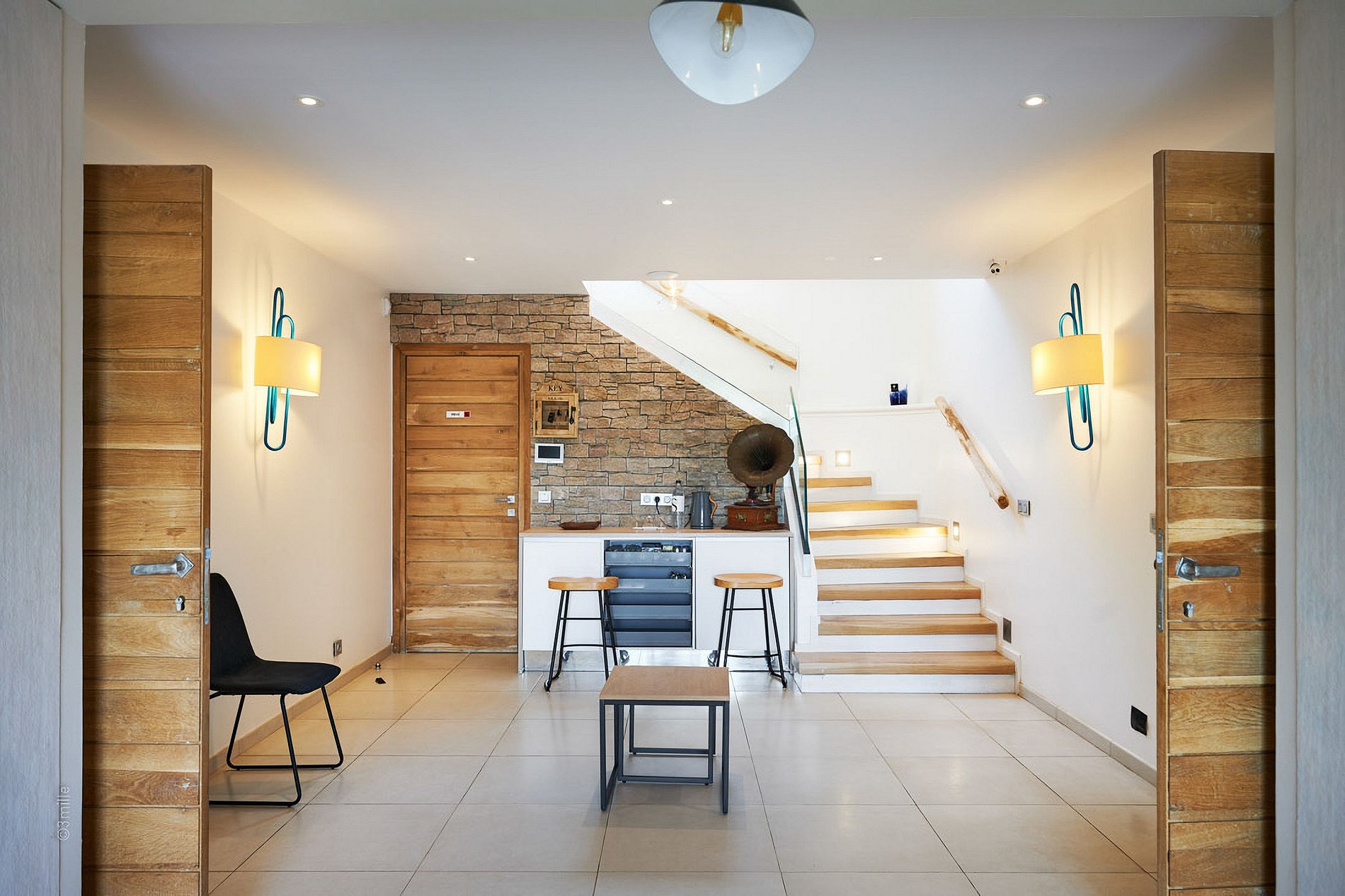 No andar térreo, a villa oferece um espaço de bem-estar com sala de massagem, banheiros adicionais, uma cozinha de verão equipada, e uma pergola bioclimática, além de uma área gourmet com churrasqueira e plancha — perfeita para refeições ao ar livre em um ambiente tranquilo e rodeado de verde.