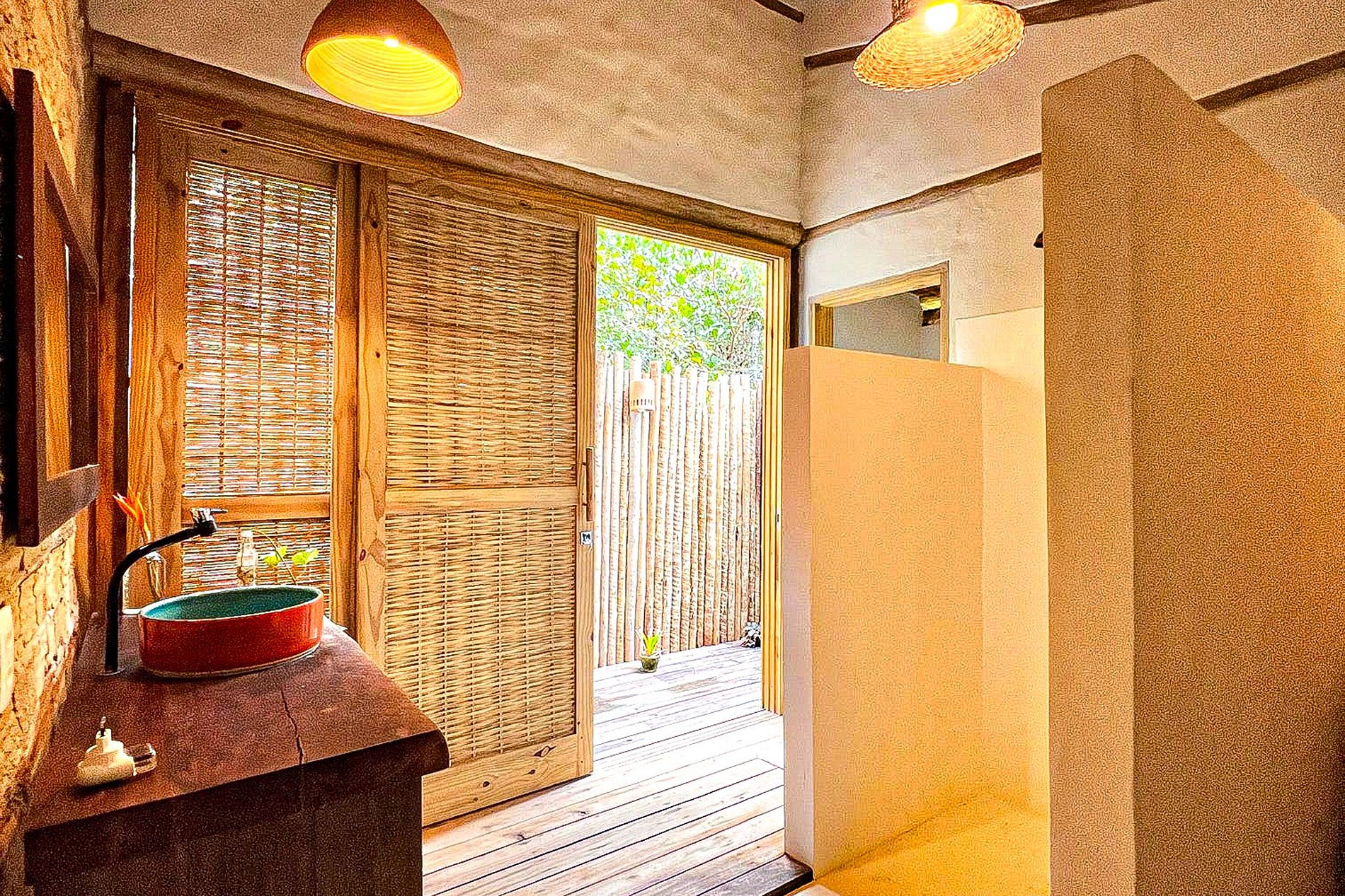 A casa principal tem 3 suítes tendo banheiros lindos. Todas equipadas e completas. Ao lado da piscina a casa tem 2 bangalo, bem charmosos. Todos os quartos tem mosquiteiro.