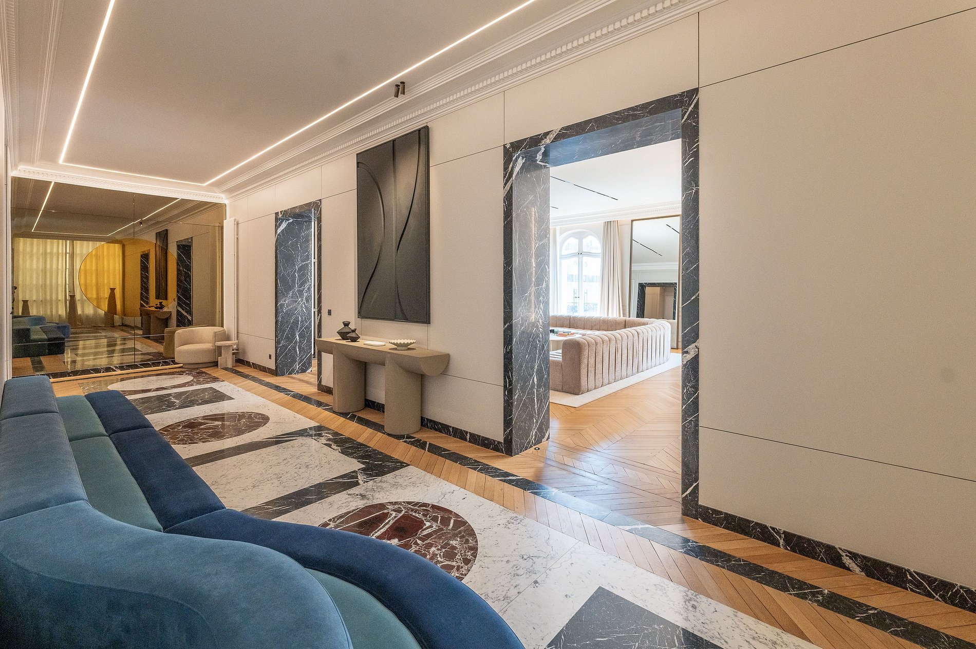 Com 300m² de espaços elegantemente projetados e climatizados, o imóvel dispõe de 5 quartos espaçosos, cada um equipado com seu próprio banheiro privativo e televisão, garantindo conforto, privacidade e luxo para todos os hóspedes. Situado em um edifício haussmanniano de alto padrão com amenidades refinadas, este apartamento se destaca pelo notável trabalho arquitetônico, especialmente pelo corredor espetacular com um teto exclusivo em forma de onda espelhada—verdadeiramente uma maravilha estética.