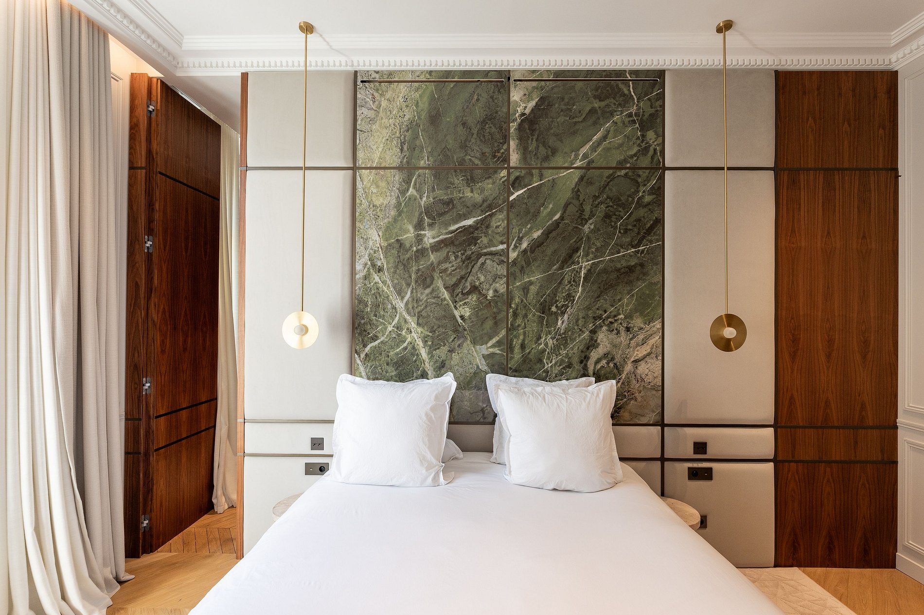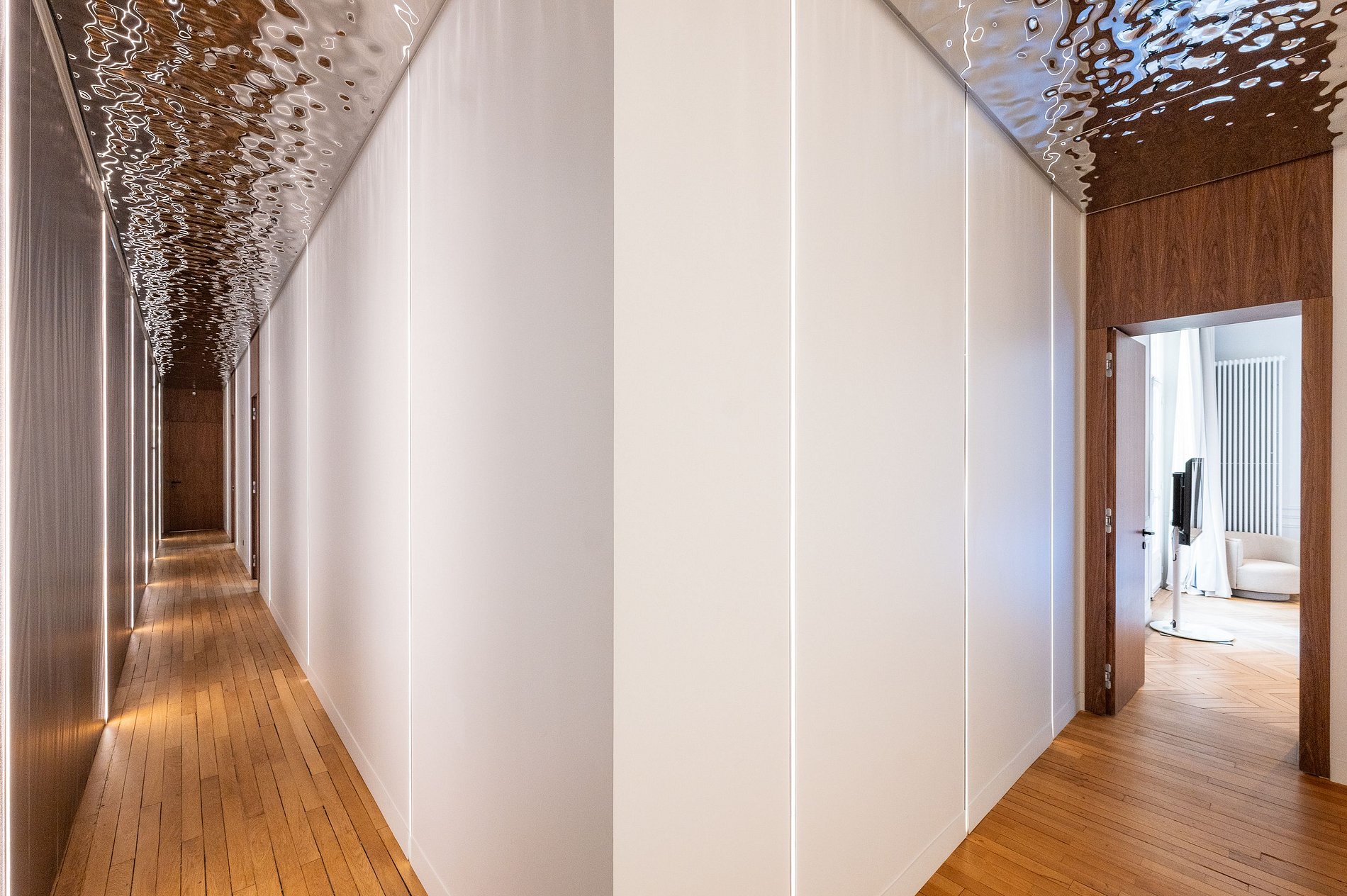Com 300m² de espaços elegantemente projetados e climatizados, o imóvel dispõe de 5 quartos espaçosos, cada um equipado com seu próprio banheiro privativo e televisão, garantindo conforto, privacidade e luxo para todos os hóspedes. Situado em um edifício haussmanniano de alto padrão com amenidades refinadas, este apartamento se destaca pelo notável trabalho arquitetônico, especialmente pelo corredor espetacular com um teto exclusivo em forma de onda espelhada—verdadeiramente uma maravilha estética.