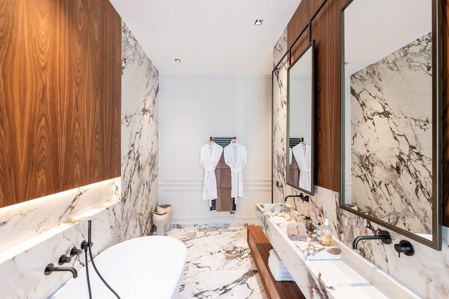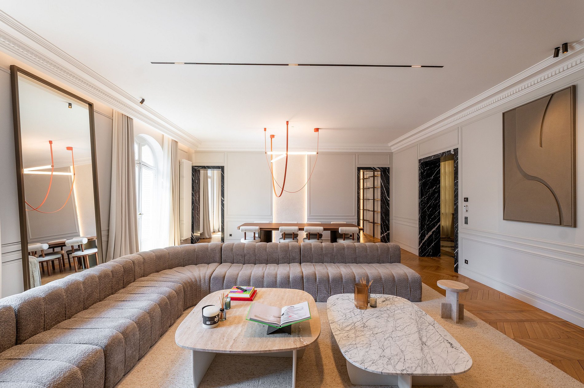 Com 300m² de espaços elegantemente projetados e climatizados, o imóvel dispõe de 5 quartos espaçosos, cada um equipado com seu próprio banheiro privativo e televisão, garantindo conforto, privacidade e luxo para todos os hóspedes. Situado em um edifício haussmanniano de alto padrão com amenidades refinadas, este apartamento se destaca pelo notável trabalho arquitetônico, especialmente pelo corredor espetacular com um teto exclusivo em forma de onda espelhada—verdadeiramente uma maravilha estética.