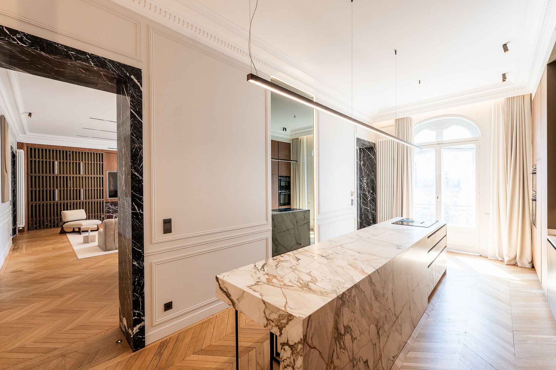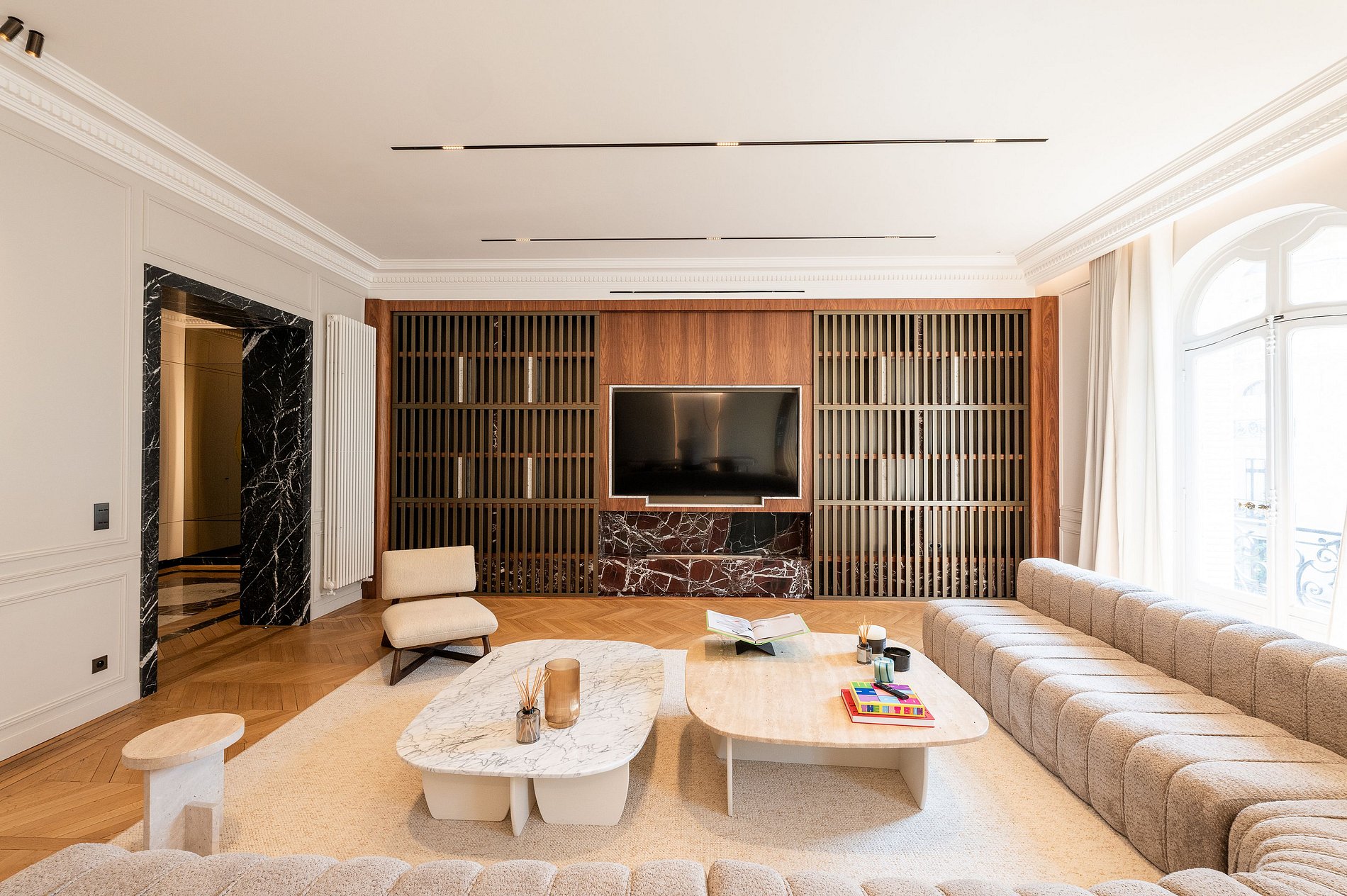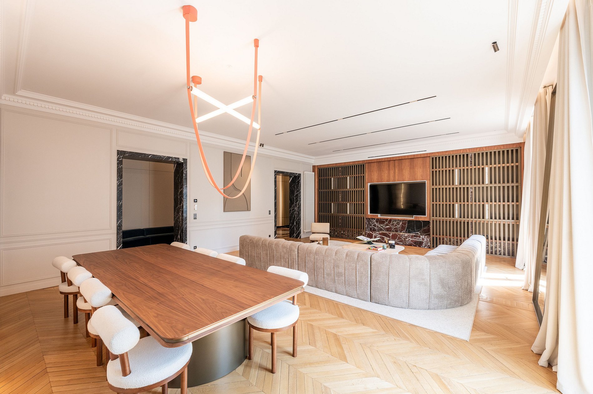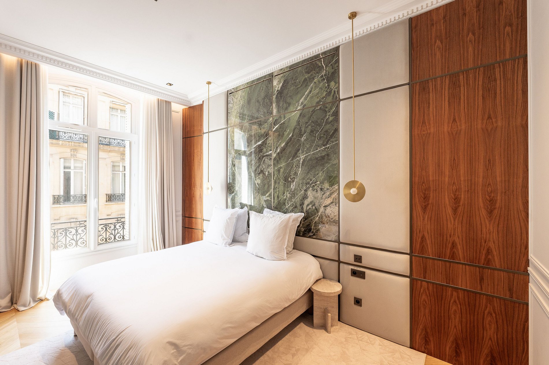 Com 300m² de espaços elegantemente projetados e climatizados, o imóvel dispõe de 5 quartos espaçosos, cada um equipado com seu próprio banheiro privativo e televisão, garantindo conforto, privacidade e luxo para todos os hóspedes. Situado em um edifício haussmanniano de alto padrão com amenidades refinadas, este apartamento se destaca pelo notável trabalho arquitetônico, especialmente pelo corredor espetacular com um teto exclusivo em forma de onda espelhada—verdadeiramente uma maravilha estética.