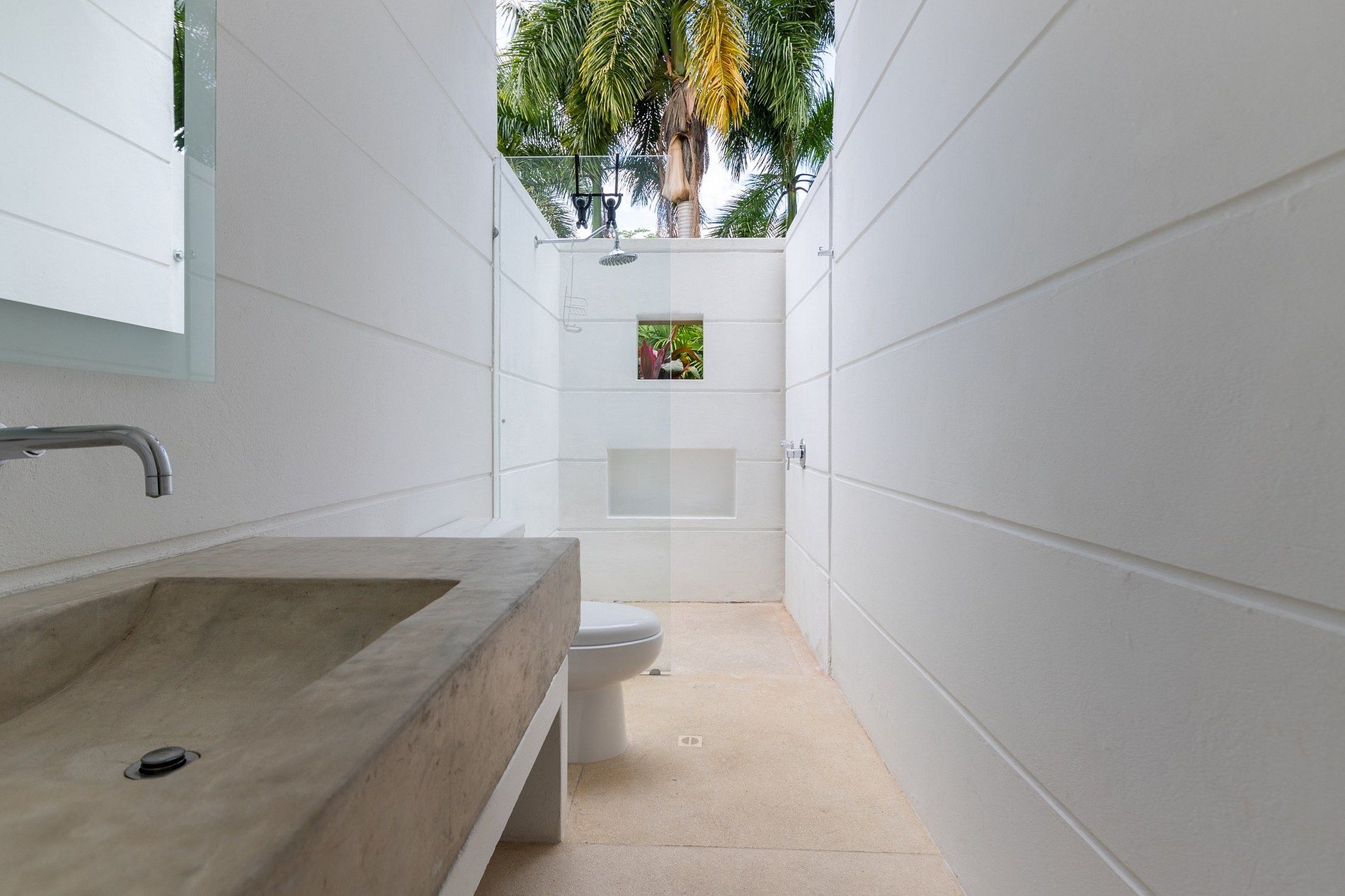 A casa possuí 4 confortáveis suítes, todas elas preparadas para receber famílias de 3 a 4 pessoas, cada suíte possuí banheiro, tv a cabo e acesso direto ao jardim da propriedade. A área externa da casa possuí uma grande piscina infinita com espreguiçadeiras e área de refeições com uma churrasqueira a gás.
