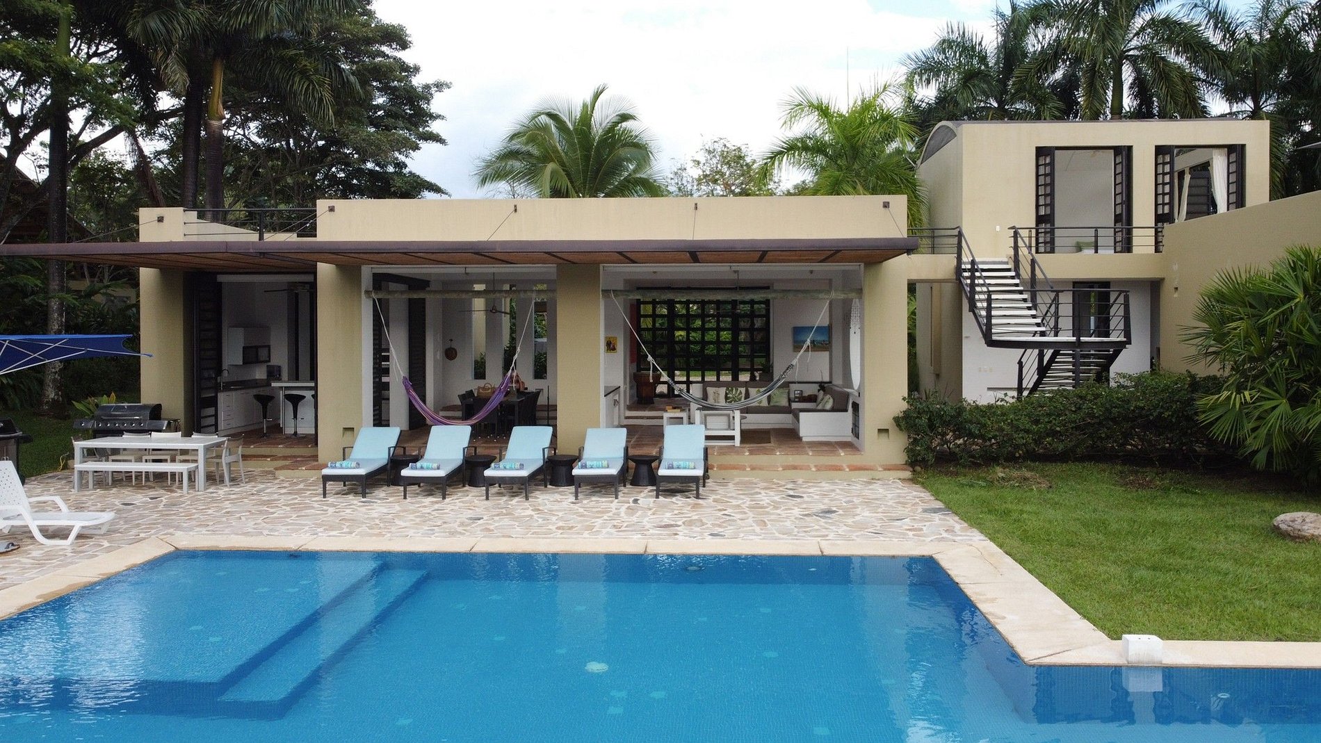 Essa charmosa casa em Mesa de Yeguas, Anapoima, possuí 4 confortáveis suítes, todas elas preparadas para receber famílias de 3 a 4 pessoas, cada suíte possuí banheiro, tv a cabo e acesso direto ao jardim da propriedade. A área externa da casa possuí uma grande piscina infinita com espreguiçadeiras e área de refeições com uma churrasqueira a gás.