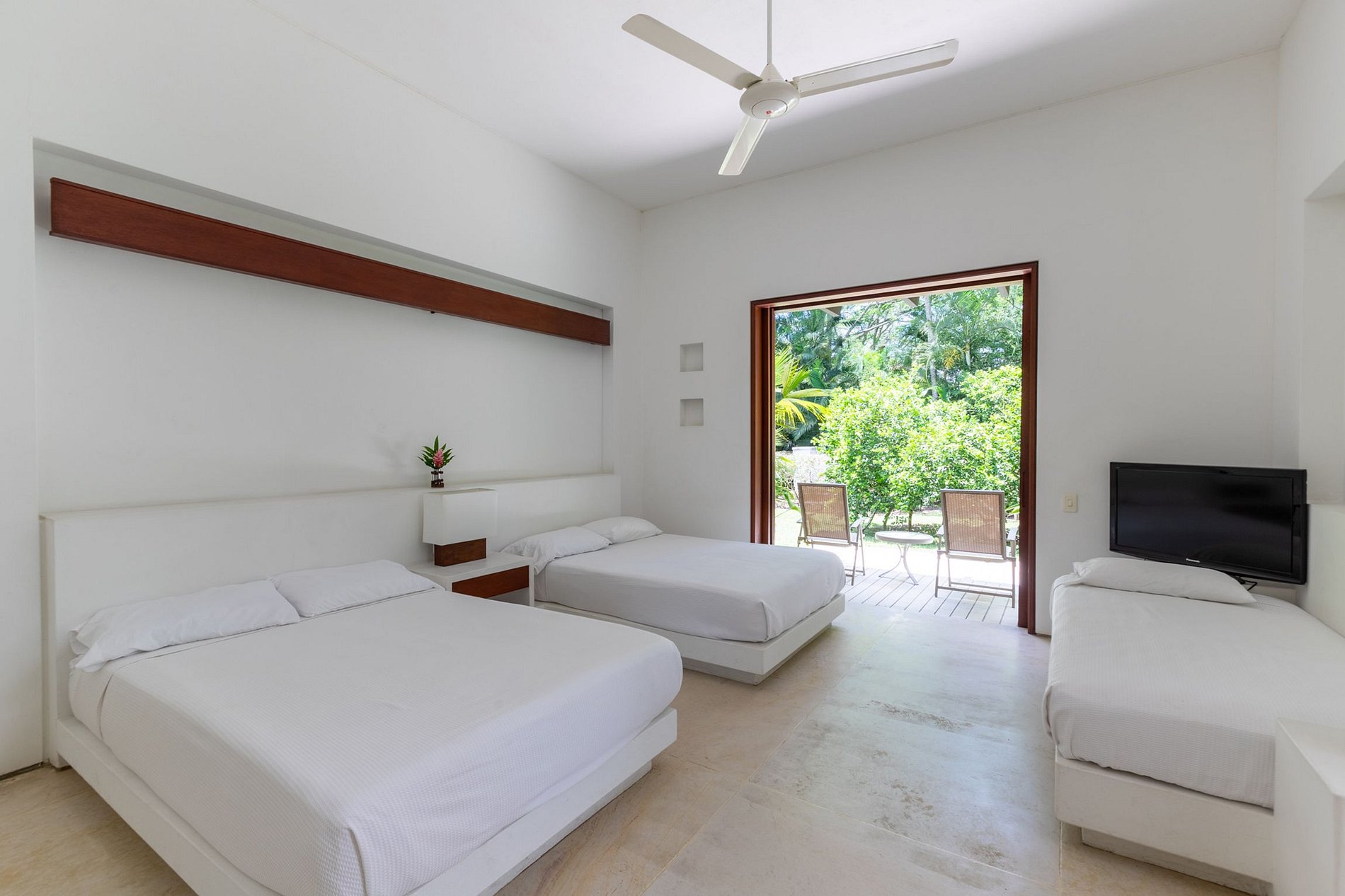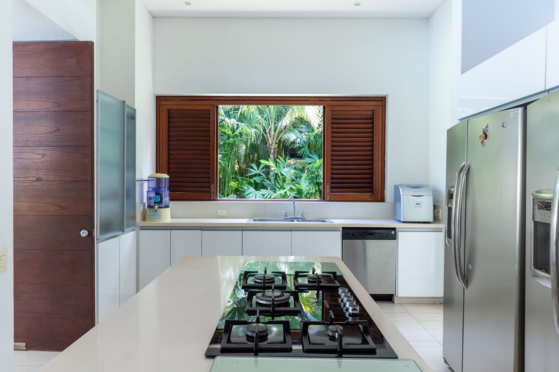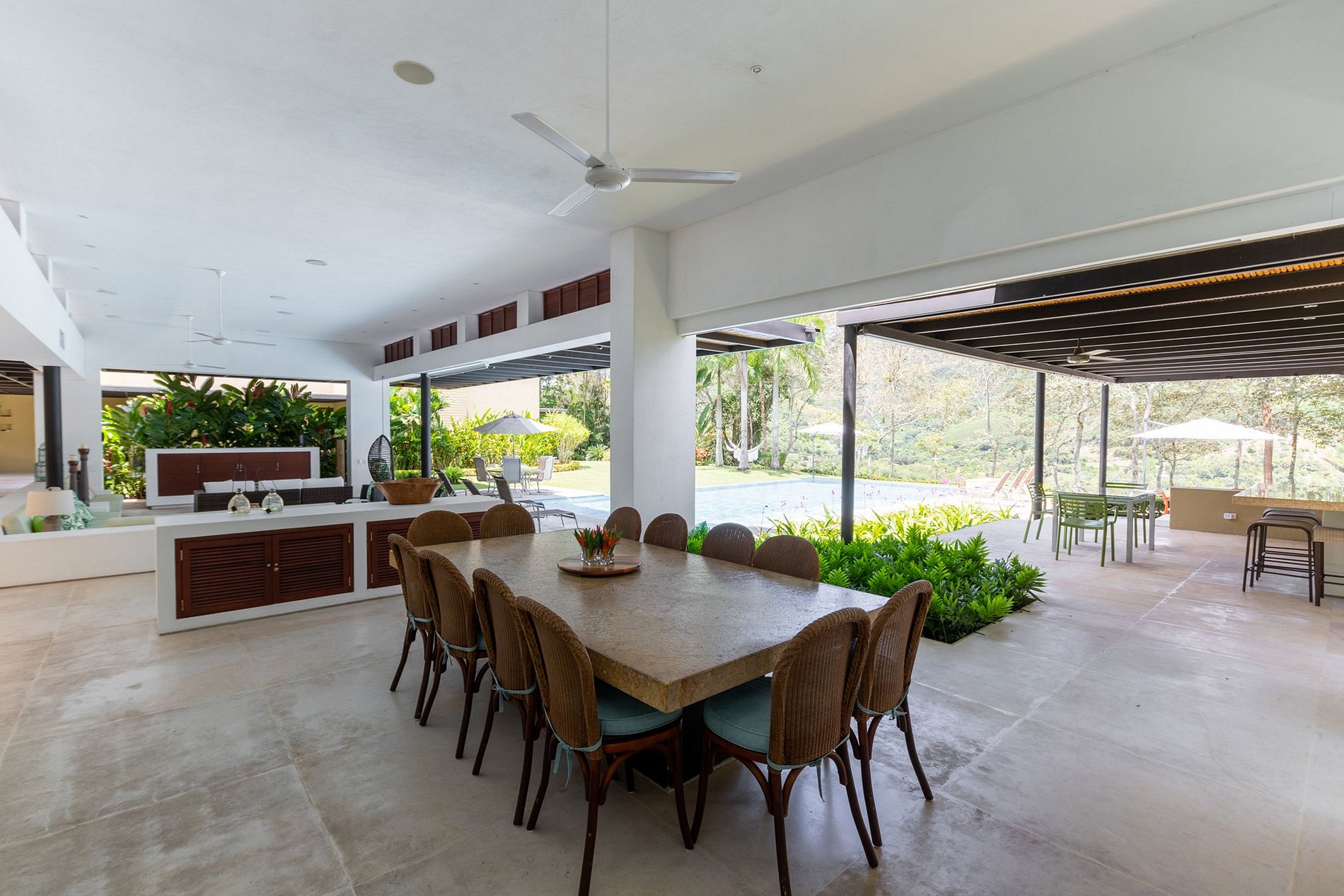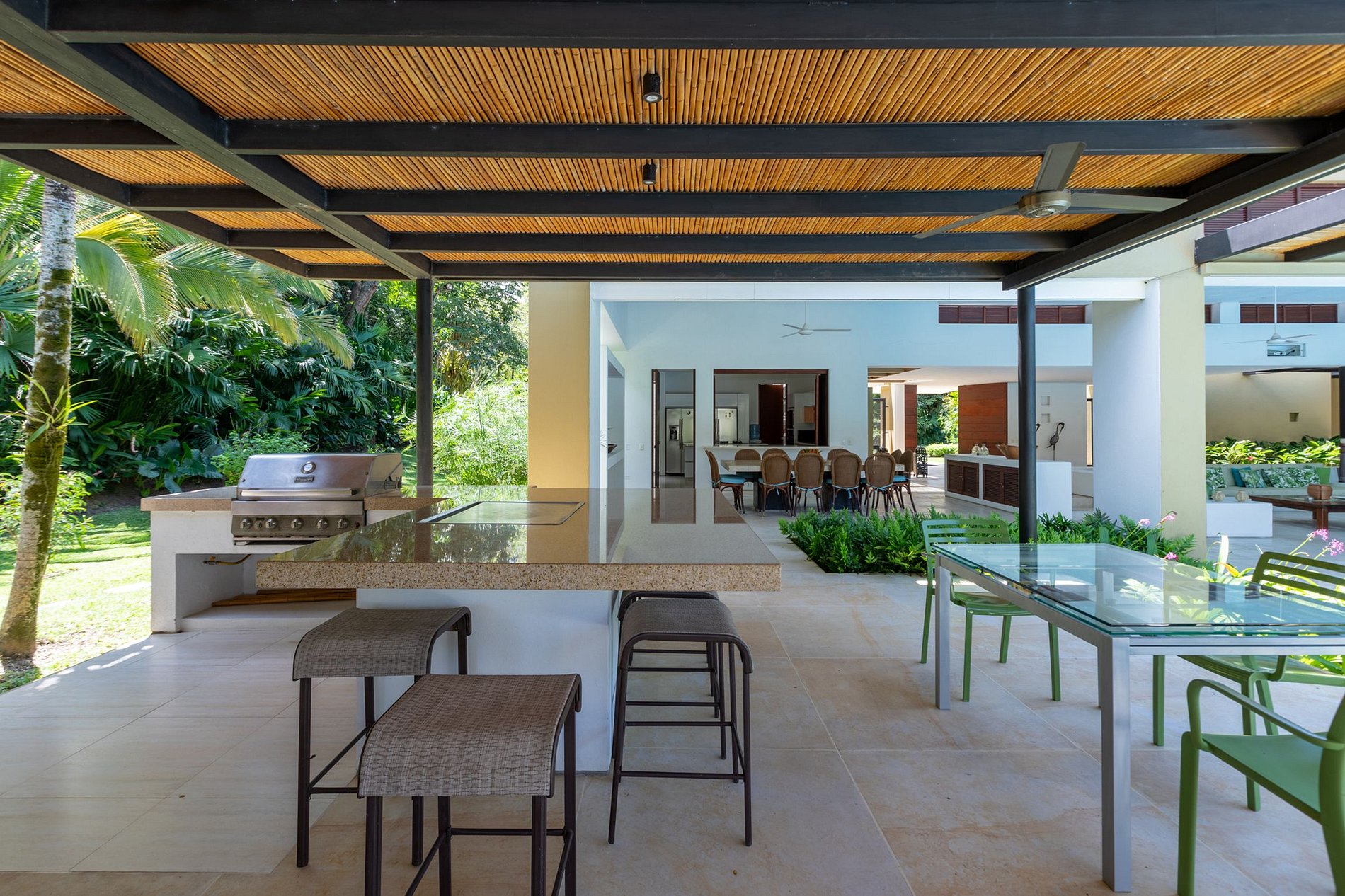 Esta grande propriedade faz uso de luz natural com abundância, a ausência de paredes em quase todas as áreas sociais faz com que a brisa entre durante todo o dia refrescando a casa, enquanto a luz natural do sol inunda todos os cômodos. Um design sustentável que coloca todos os hóspedes em contato com a paz e tranquilidade da flora local.
