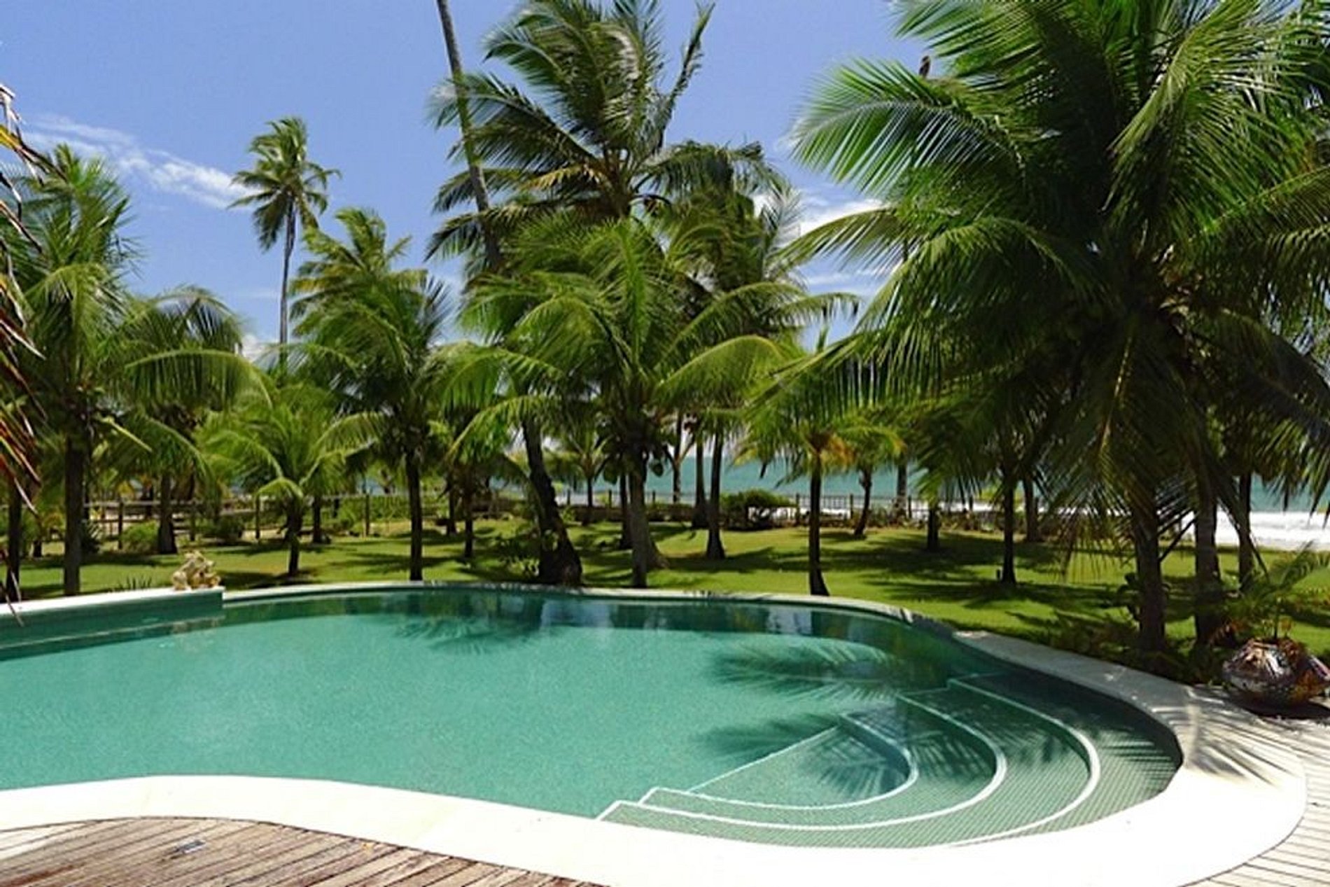 A sala arejada possui decorações coloridas, as 2 pérgolas são perfeitas para tomar café, almoçar ou jantar no som do mar, a grande piscina um luxo para se refrescar e nadar.