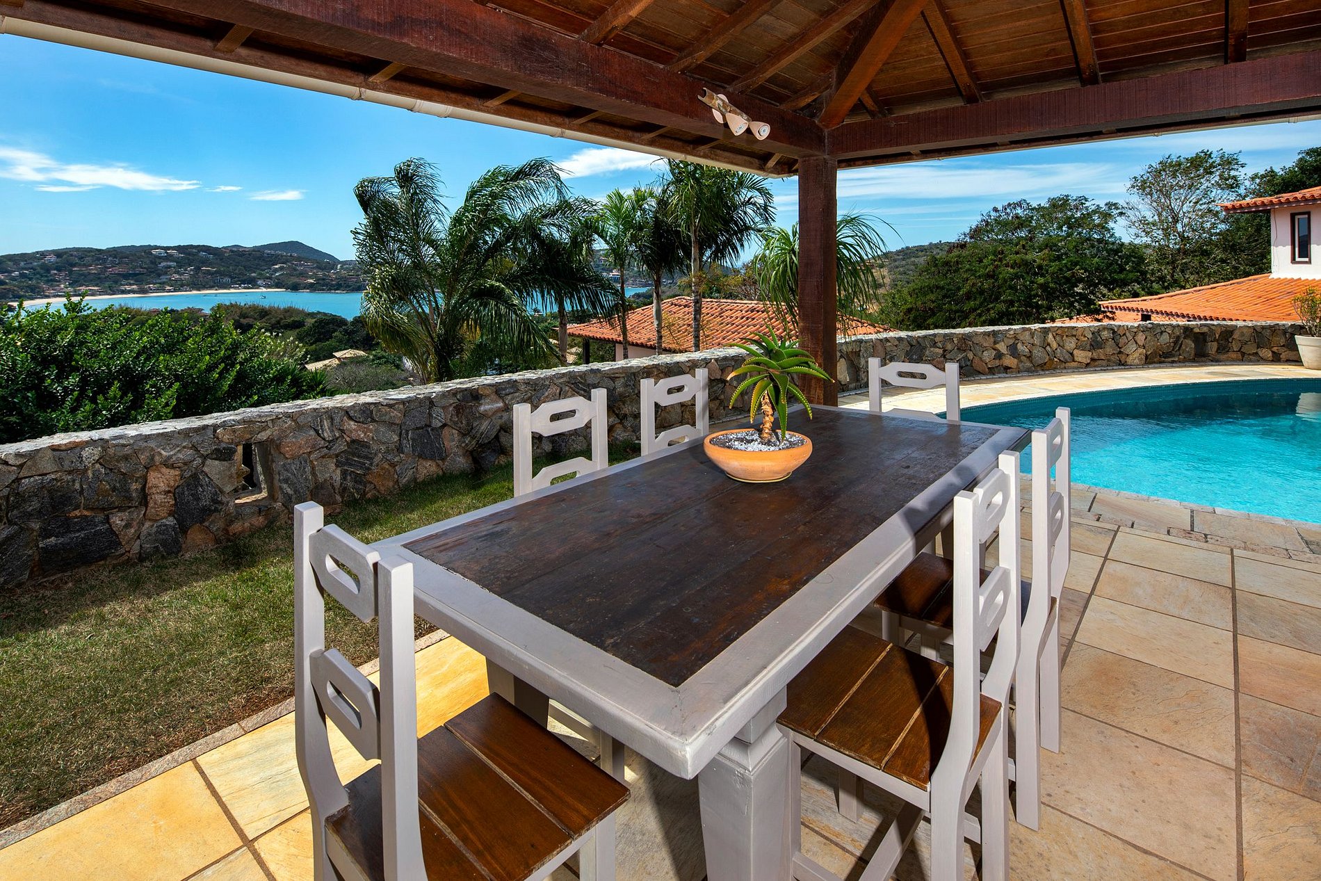 Esta casa de férias de luxo é a escolha ideal para um retiro de Búzios ou um refúgio exclusivo de Ano Novo. Está localizado em uma comunidade fechada privada em Ferradura com 4 quartos espaçosos e uma piscina.