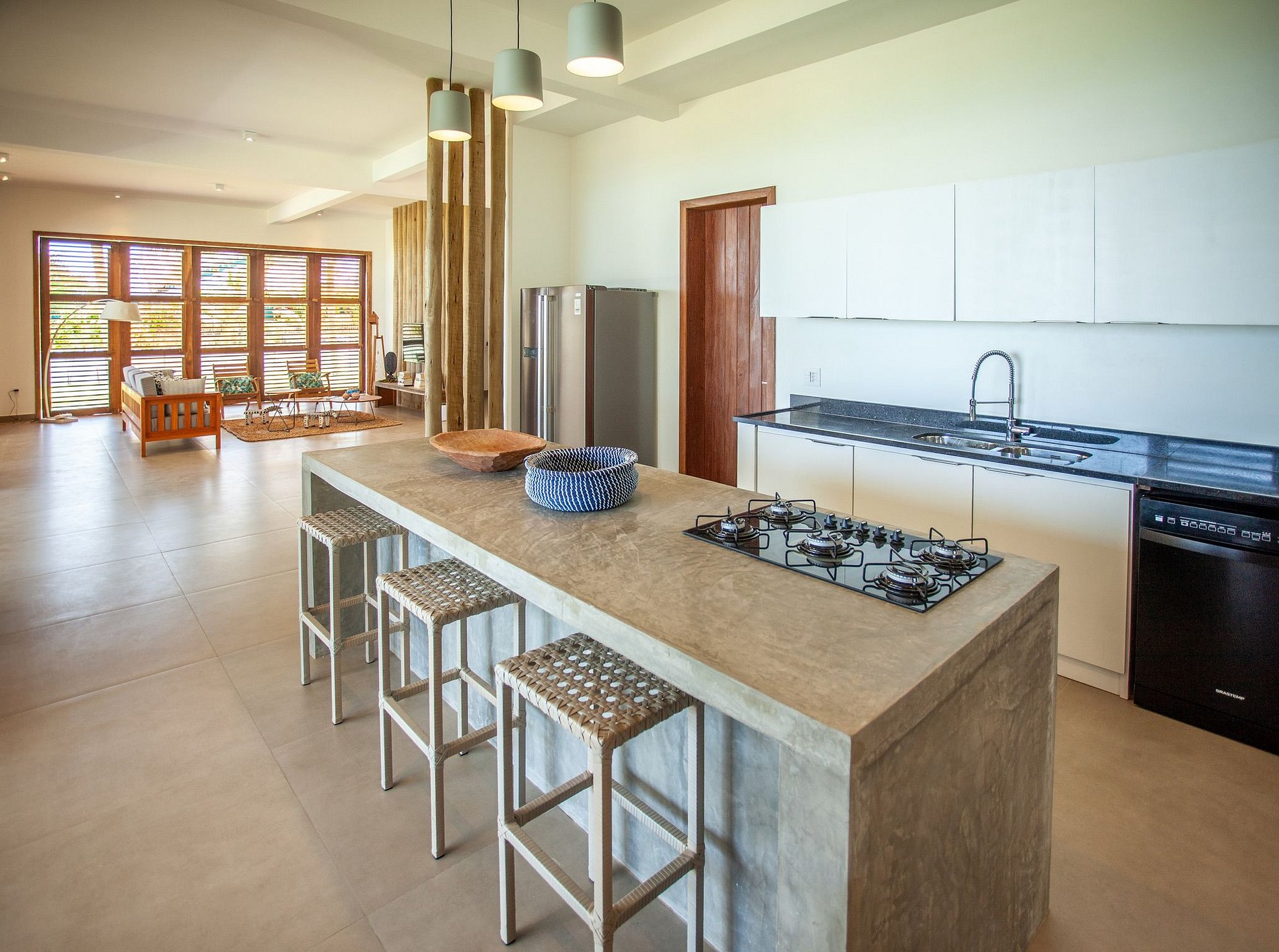 Projetada para proporcionar bem-estar em cada detalhe, a casa conta com 4 suítes aconchegantes, acomodando até 12 hóspedes com muito conforto. Os ambientes são amplos, bem ventilados e integrados, com destaque para a área social que inclui sala de estar, sala de TV, sala de jantar e cozinha aberta, tudo com vista deslumbrante para o oceano. A paleta suave e o uso de materiais naturais criam uma atmosfera relaxante e elegante, perfeita para quem busca tranquilidade com sofisticação.