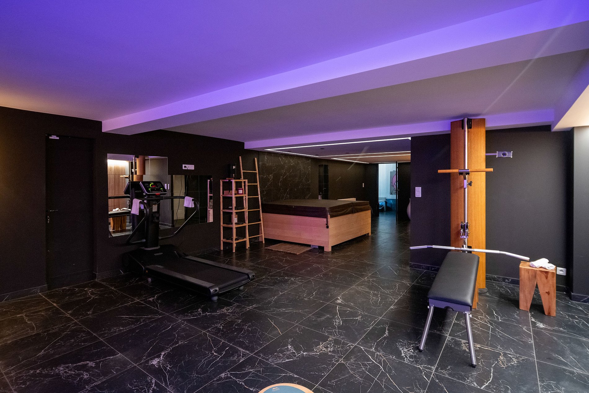 A propriedade dispõe de 4 quartos, cada um com seu próprio banheiro, proporcionando espaços íntimos e confortáveis para seus convidados. Além disso, um escritório que pode ser convertido em mais um quarto, uma sala de cinema e uma espaçosa academia com sauna e sala de jogos estão à sua disposição, permitindo que você relaxe e se divirta com estilo.