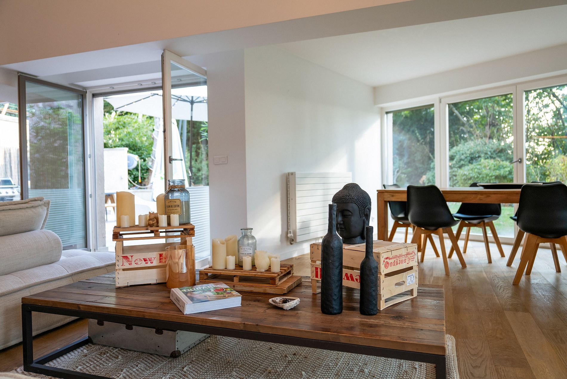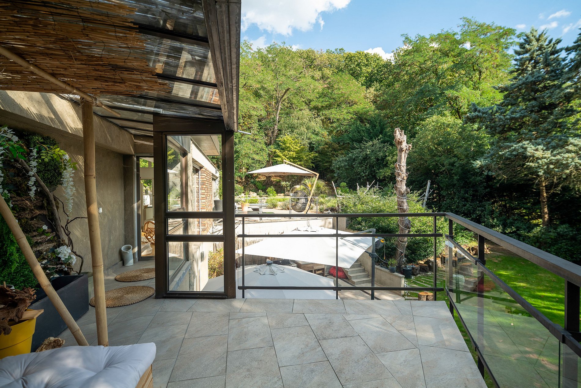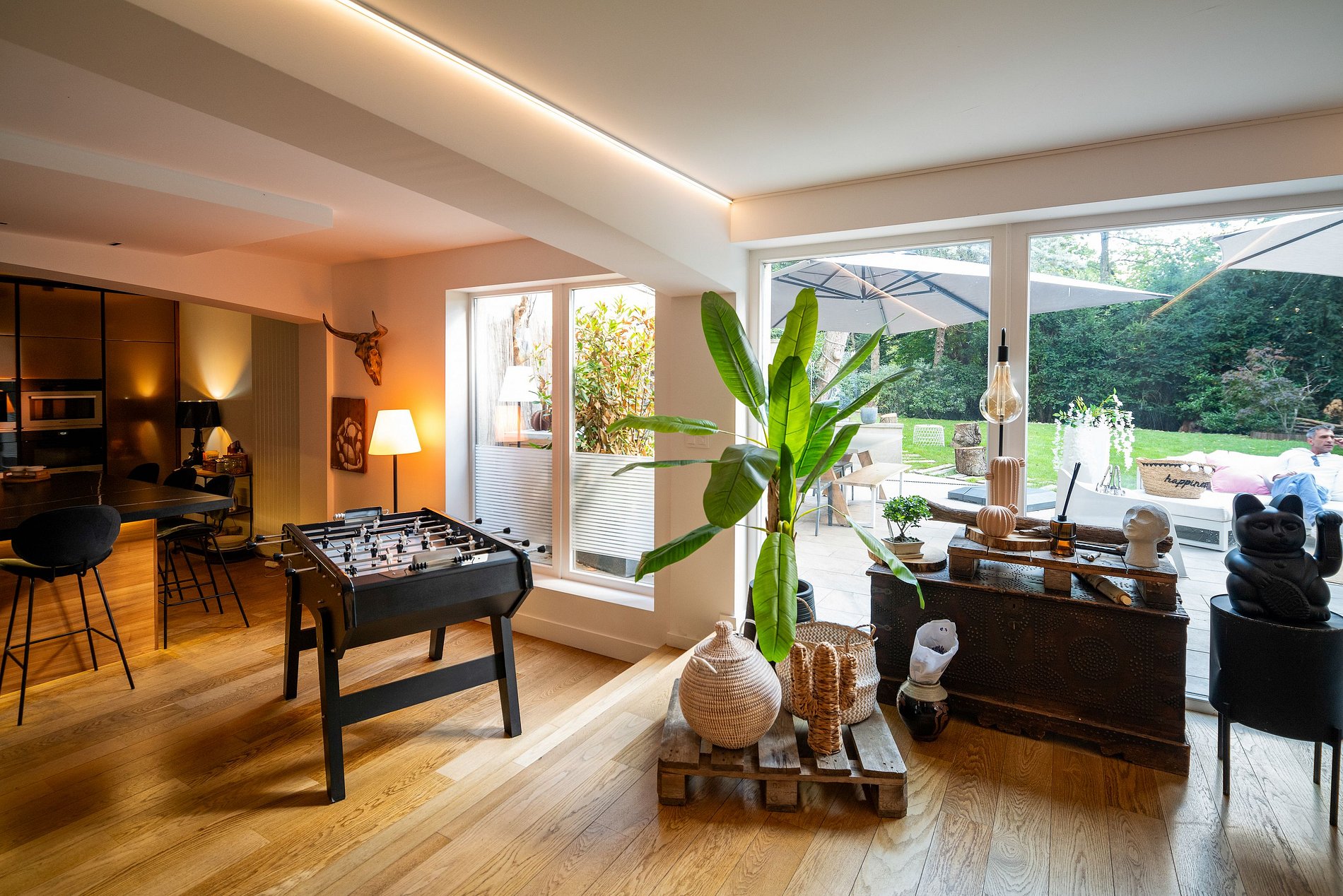 No interior, você será recebido por uma ampla sala de estar de plano aberto que se abre para um jardim exuberante equipado com uma cozinha de verão, além de uma piscina aquecida que convida à relaxar. Todo o ambiente cria um oásis de tranquilidade e entretenimento.