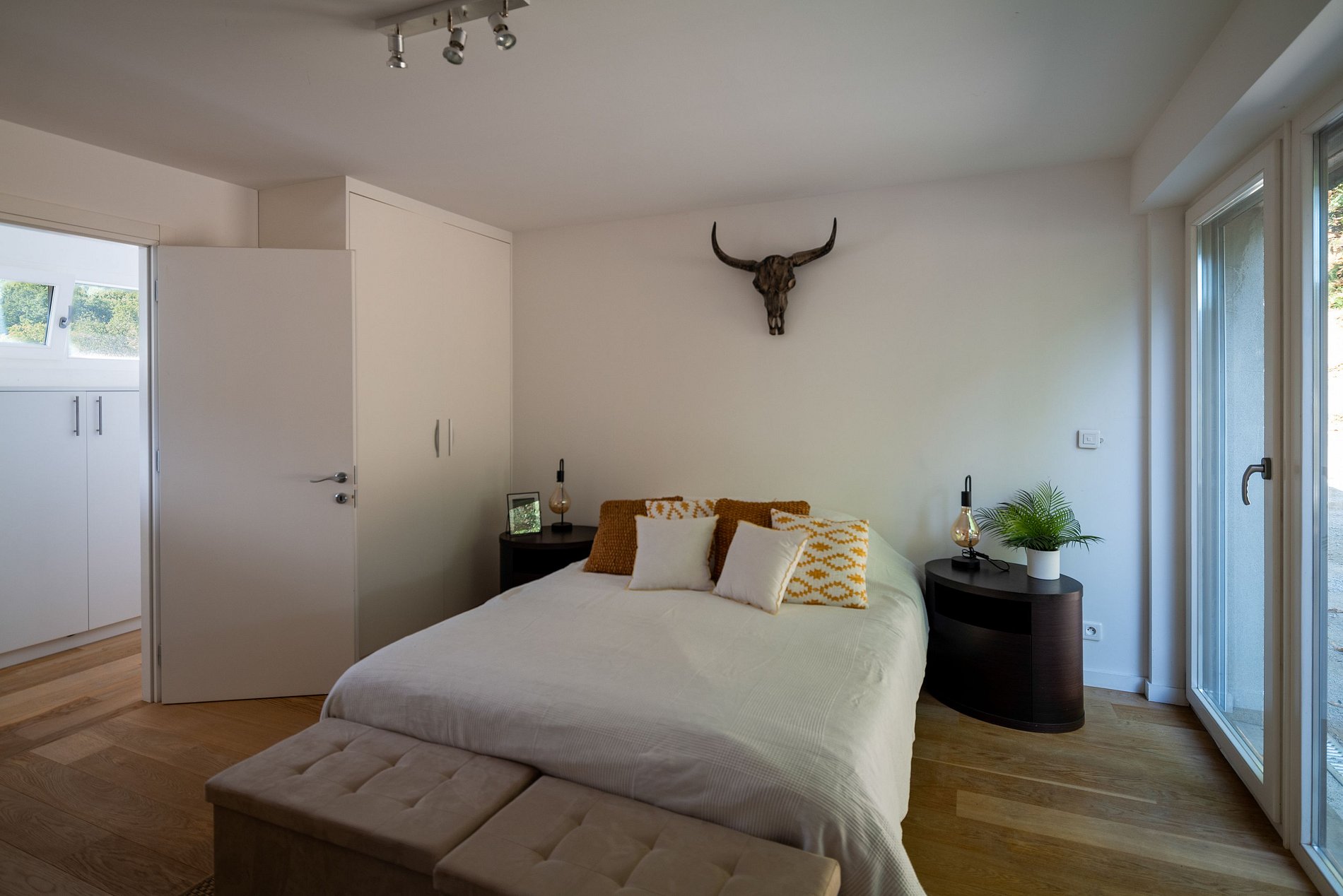 A propriedade dispõe de 4 quartos, cada um com seu próprio banheiro, proporcionando espaços íntimos e confortáveis para seus convidados. Além disso, um escritório que pode ser convertido em mais um quarto, uma sala de cinema e uma espaçosa academia com sauna e sala de jogos estão à sua disposição, permitindo que você relaxe e se divirta com estilo.