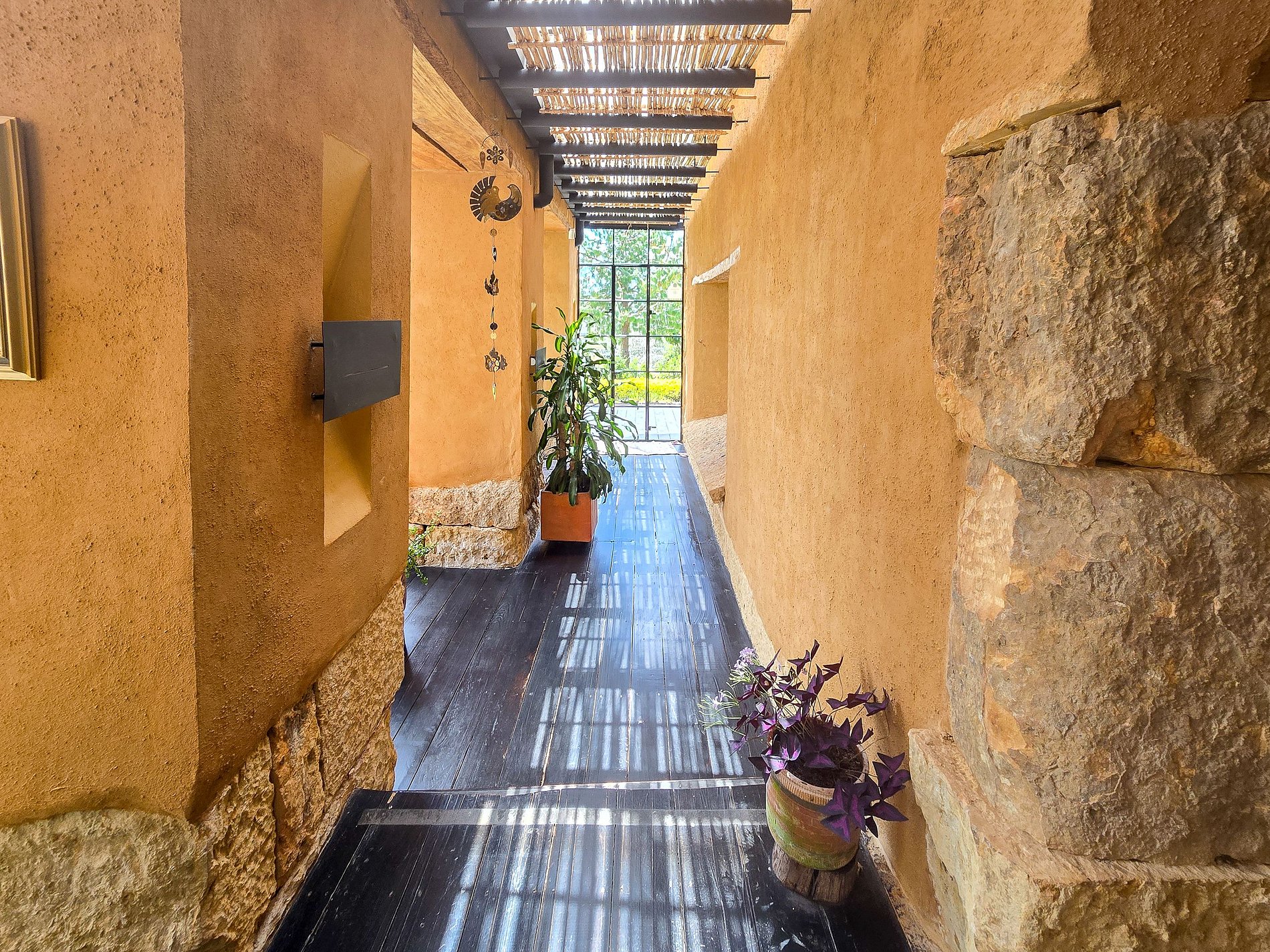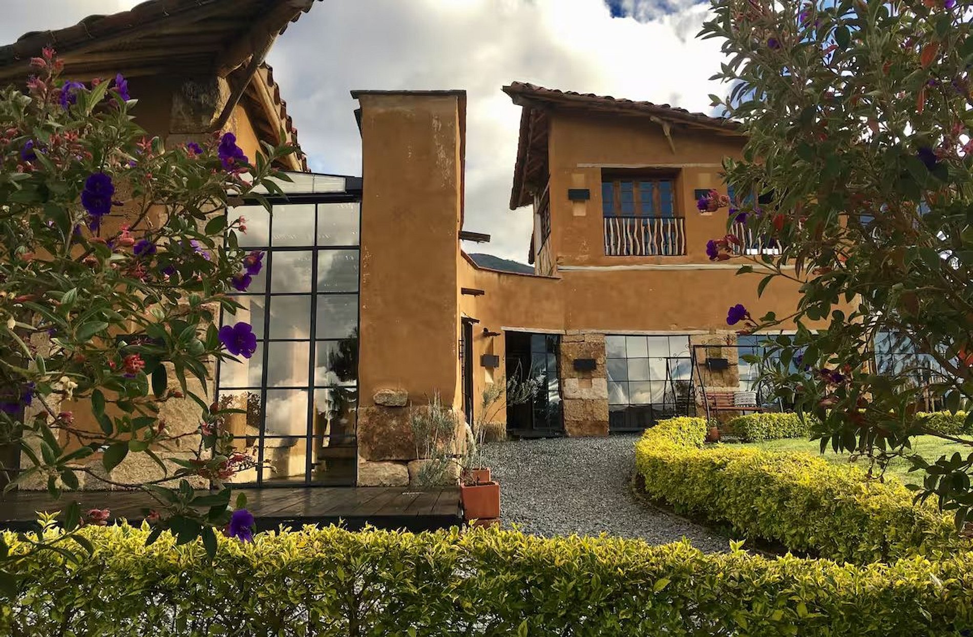 Esta casa singular está situada a poucos minutos do centro histórico de Villa de Leyva e oferece uma vista ampla das montanhas e vales ao redor. Construída em taipa e finalizada com pedra talhada, madeira e tetos tradicionais de cana, a arquitetura se integra de forma orgânica à paisagem, oferecendo privacidade, conforto e um estilo acolhedor.