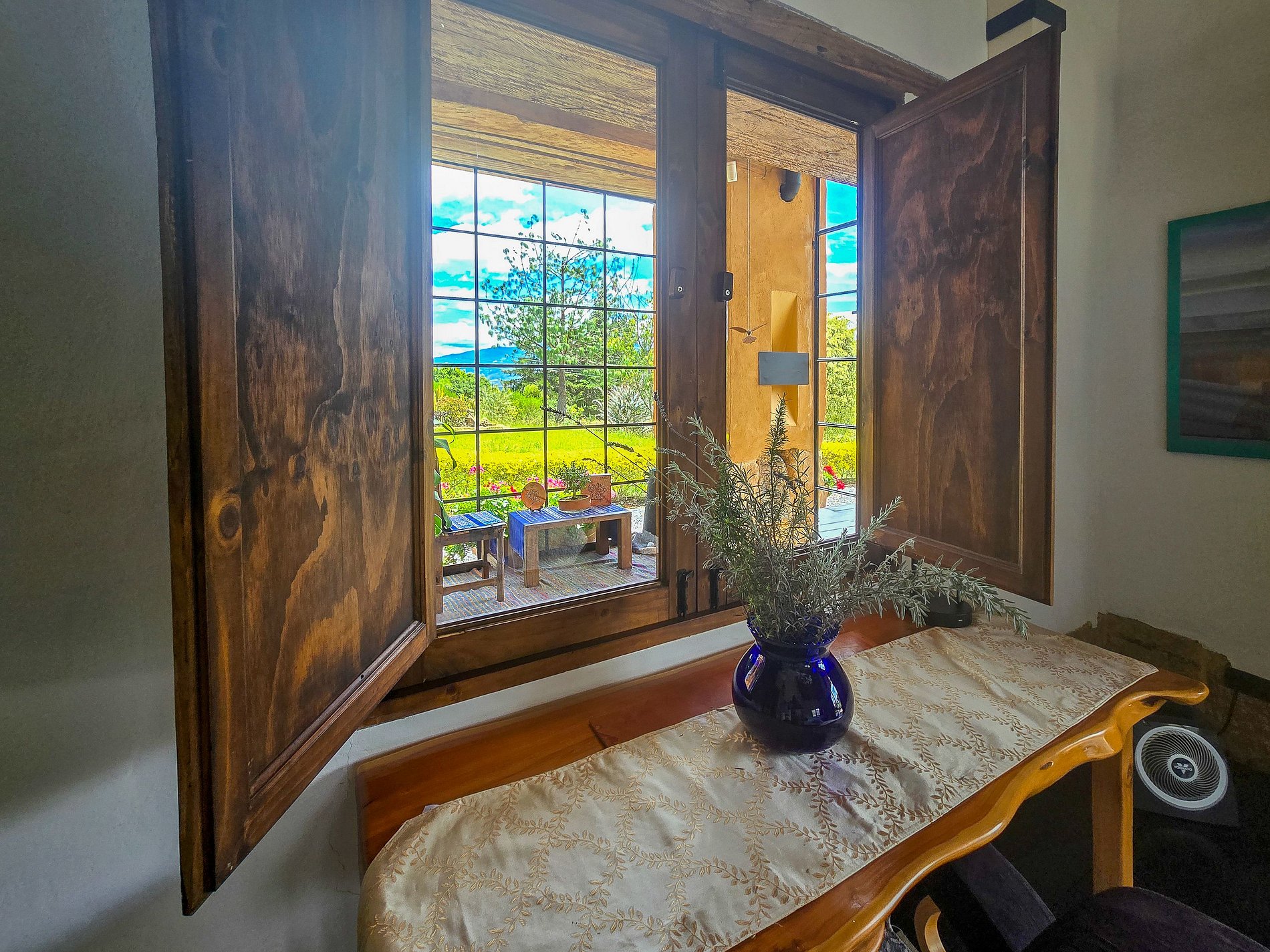 No andar superior, a sala de jantar panorâmica e a cozinha aberta são voltadas para as colinas, com varandas adjacentes que convidam ao descanso a qualquer hora do dia. A sala de estar oferece um ambiente aconchegante com livros, jogos de tabuleiro e TV inteligente. Na área externa, há redes, churrasqueira e jardins totalmente cercados.