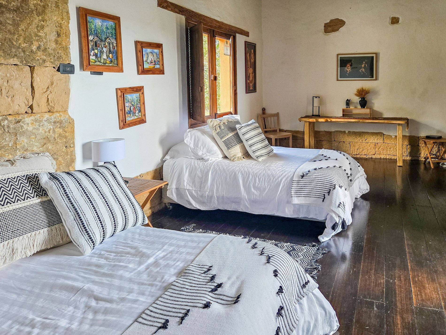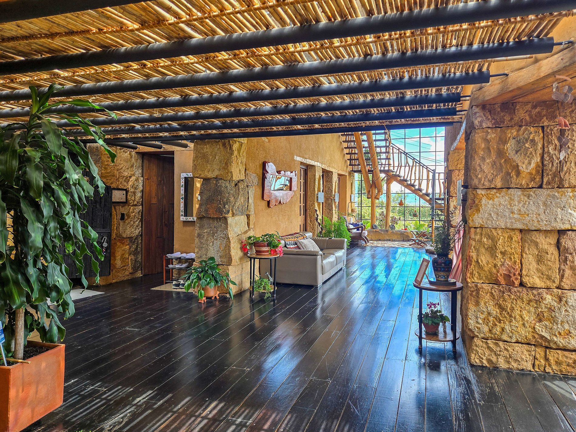 Esta casa singular está situada a poucos minutos do centro histórico de Villa de Leyva e oferece uma vista ampla das montanhas e vales ao redor. Construída em taipa e finalizada com pedra talhada, madeira e tetos tradicionais de cana, a arquitetura se integra de forma orgânica à paisagem, oferecendo privacidade, conforto e um estilo acolhedor.