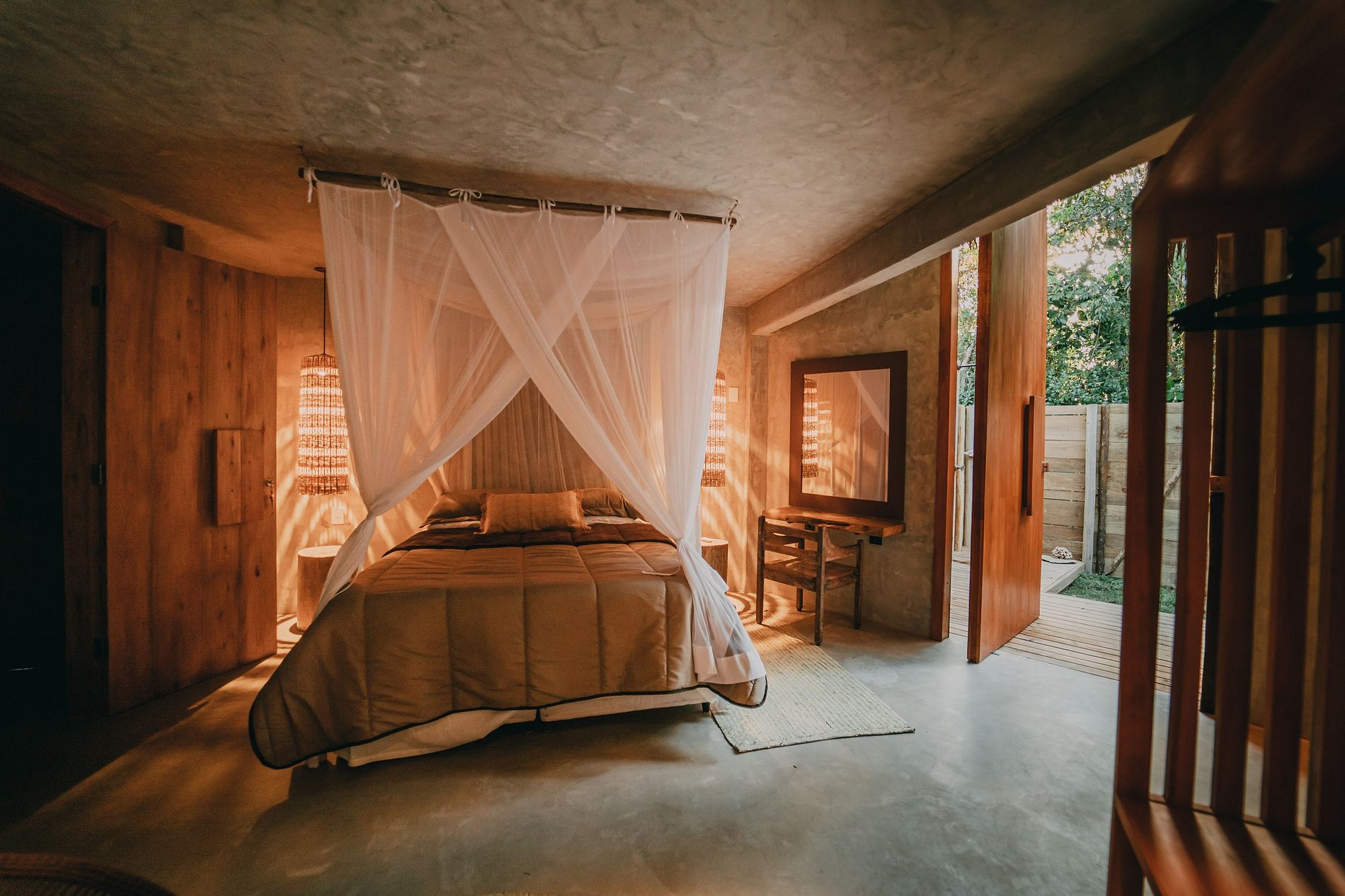O acesso à praia é feito por trilha privada, um verdadeiro luxo dentro da Mata Atlântica. Em 10 minutinhos você estará pisando nas areias da praia mais linda da Costa do Descobrimento do Brasil.