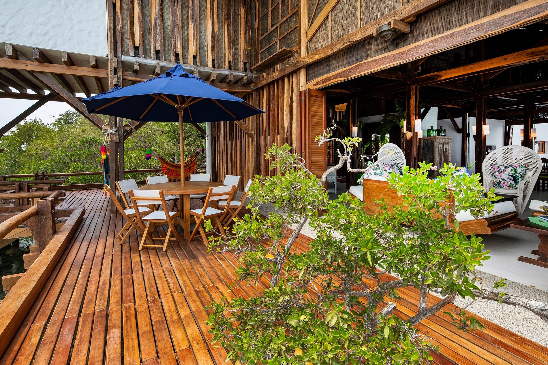 Estrutura em madeira maciça, em dois níveis, com cinco quartos espaçosos, com rede, mosquiteiro e banheiro privativo. O conforto da sua casa, junto ao mar. Você pode apreciar os diferentes tons de suas águas, o céu azul e desfrutar de um coquetel assistindo o pôr do sol até o pôr do sol. O destino que vai despertar a sua ligação com a natureza e suas paisagens incríveis.