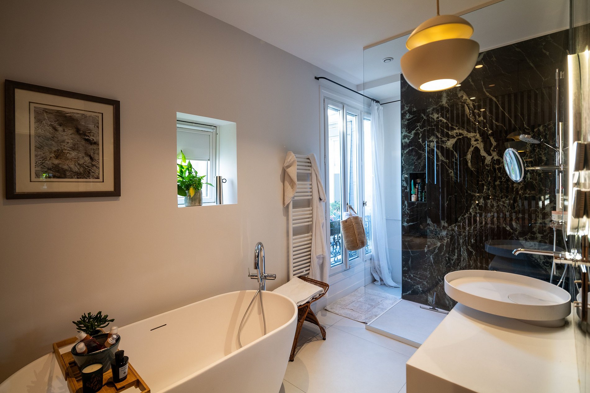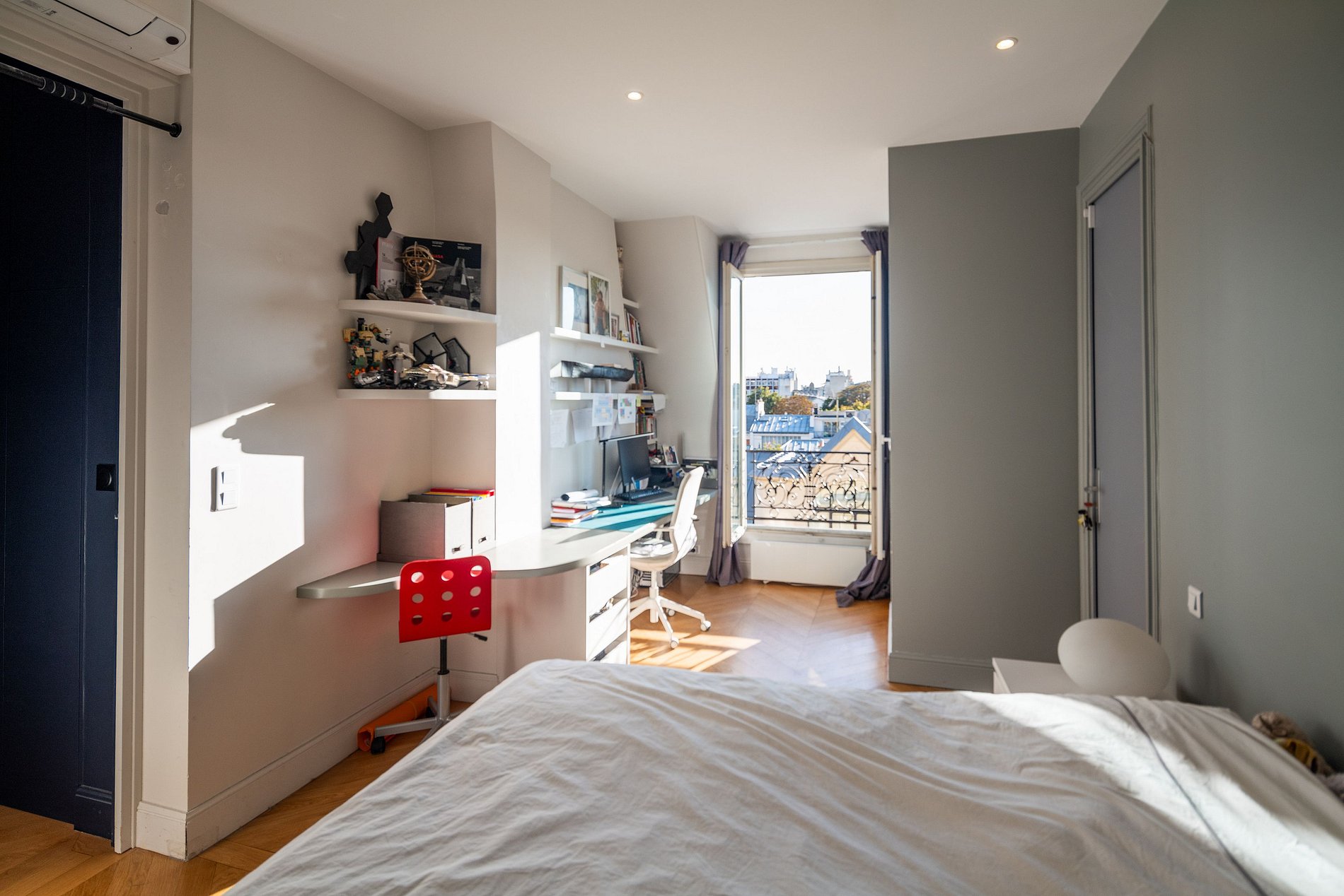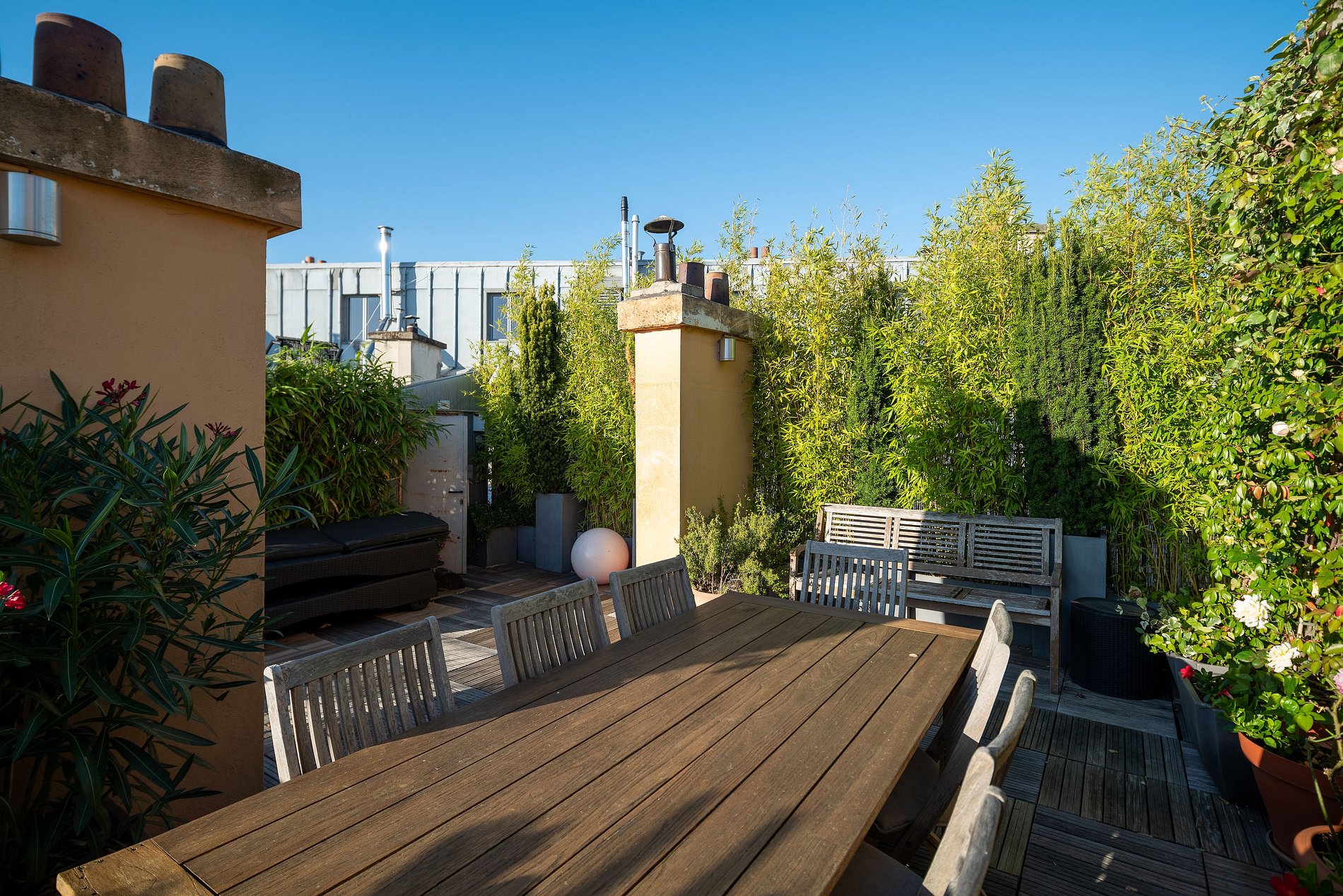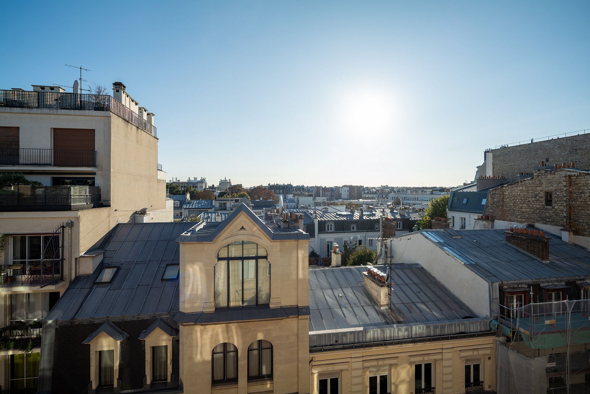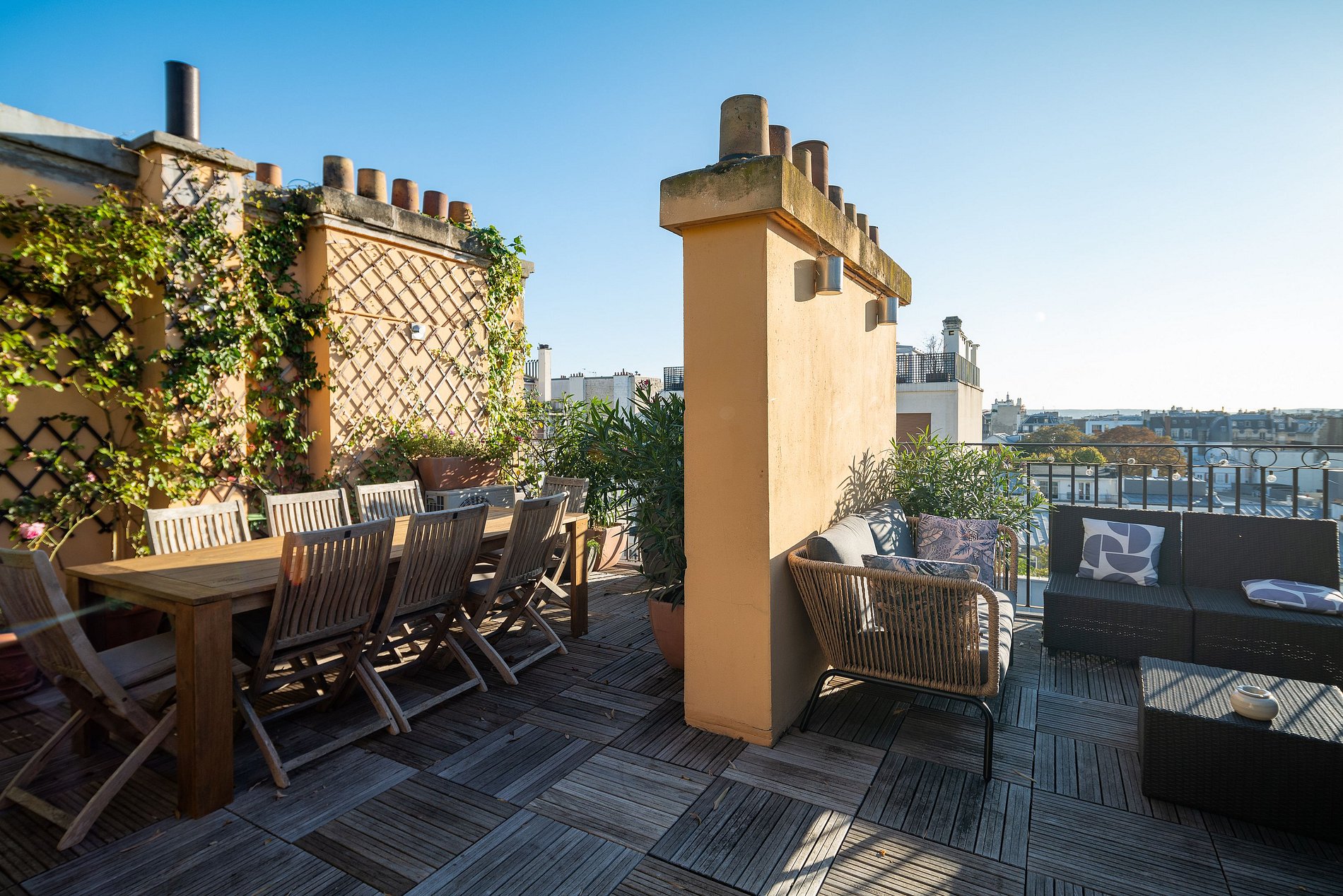 Varanda e Terraço: Desfrute de uma ampla varanda que percorre toda a extensão da propriedade, além de um adorável terraço de 50m2 com vistas panorâmicas dos telhados de Paris. É o local perfeito para desfrutar de um café da manhã ao sol ou para receber amigos.