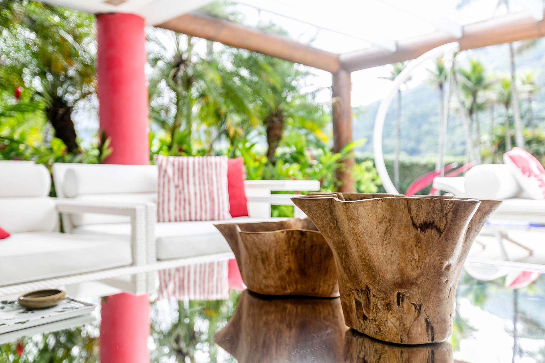 A casa de 800 m² foi construída e decorada por renomados arquitetos e designers de interiores, que criaram um ambiente elegante e de bom gosto, cheio de conforto e exclusividade. A casa tem espaços muito abertos que permitem ver desde a entrada até à piscina, criando uma sensação de amplitude.