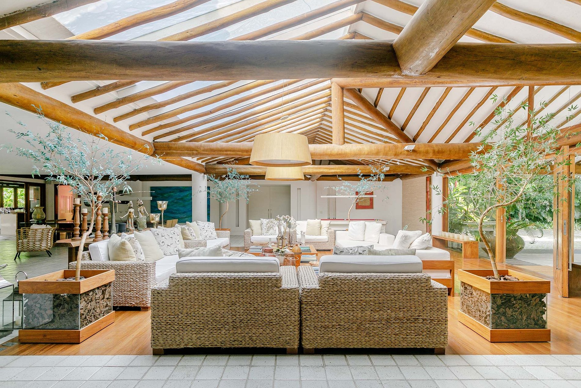 A casa de 800 m² foi construída e decorada por renomados arquitetos e designers de interiores, que criaram um ambiente elegante e de bom gosto, cheio de conforto e exclusividade. A casa tem espaços muito abertos que permitem ver desde a entrada até à piscina, criando uma sensação de amplitude.