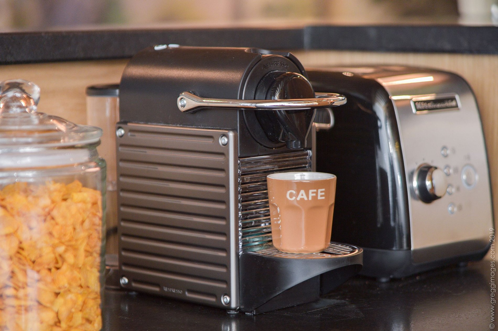 A mesa de madeira maciça da sala de jantar pode acomodar facilmente de 6 a 8 pessoas. A cozinha é bonita, espaçosa, moderna e bem equipada, em redor de uma simpática barra de granito preto. Uma completa baixela de mesa está à disposição dos hóspedes, assim como todo o equipamento necessário para receber uma criança pequena.