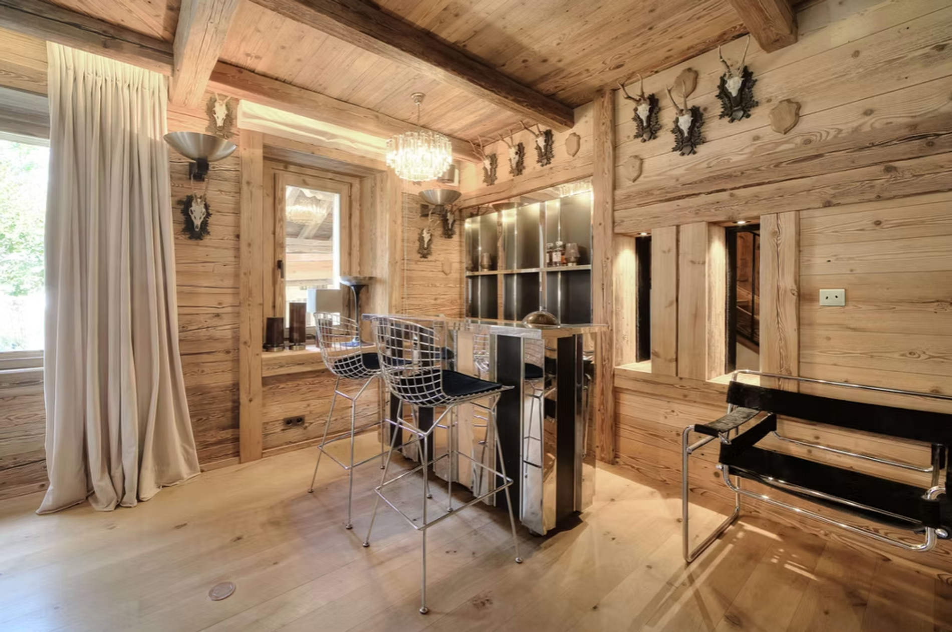 Neste lugar onde a calorosa madeira antiga, o conforto da modernidade e a beleza da arte, sempre presente, coexistem em harmonia, o chalé se estende por três andares. No térreo, o espaço de convivência (com sua sala de estar, bar, cozinha e área de jantar ao redor da lareira) se abre para o jardim, um refúgio de 800 m² de tranquilidade e serenidade com seu spa ao ar livre, um prazer tanto no inverno quanto no verão. O primeiro e o segundo andar contam com sete quartos, incluindo duas suítes, acomodando até 18 pessoas. Uma área de relaxamento com spa de natação, hammam, sauna e sala de cinema espera por você para momentos de plenitude e descanso após um dia nas pistas. O chalé também inclui um estúdio independente.
