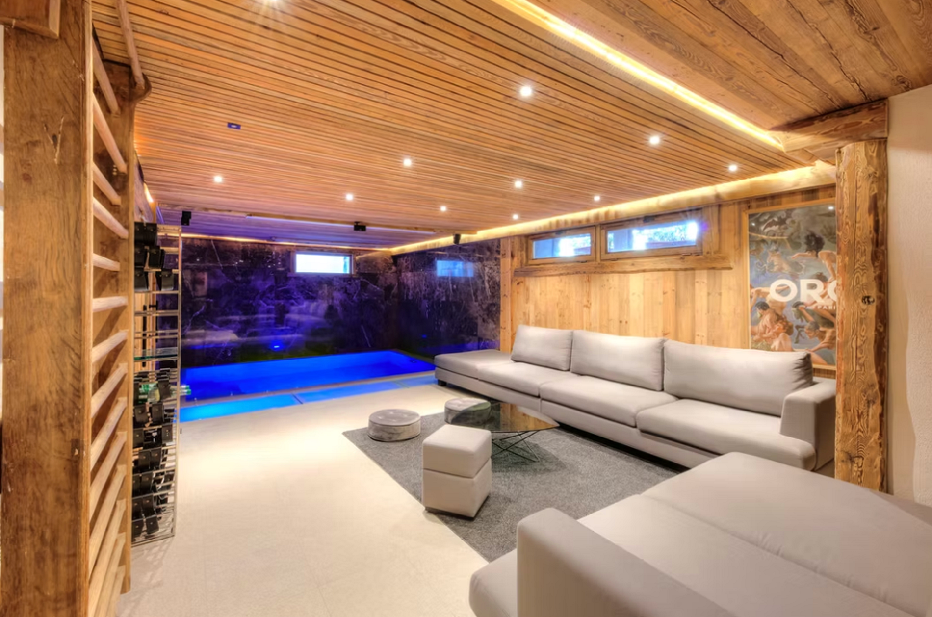 Neste lugar onde a calorosa madeira antiga, o conforto da modernidade e a beleza da arte, sempre presente, coexistem em harmonia, o chalé se estende por três andares. No térreo, o espaço de convivência (com sua sala de estar, bar, cozinha e área de jantar ao redor da lareira) se abre para o jardim, um refúgio de 800 m² de tranquilidade e serenidade com seu spa ao ar livre, um prazer tanto no inverno quanto no verão. O primeiro e o segundo andar contam com sete quartos, incluindo duas suítes, acomodando até 18 pessoas. Uma área de relaxamento com spa de natação, hammam, sauna e sala de cinema espera por você para momentos de plenitude e descanso após um dia nas pistas. O chalé também inclui um estúdio independente.